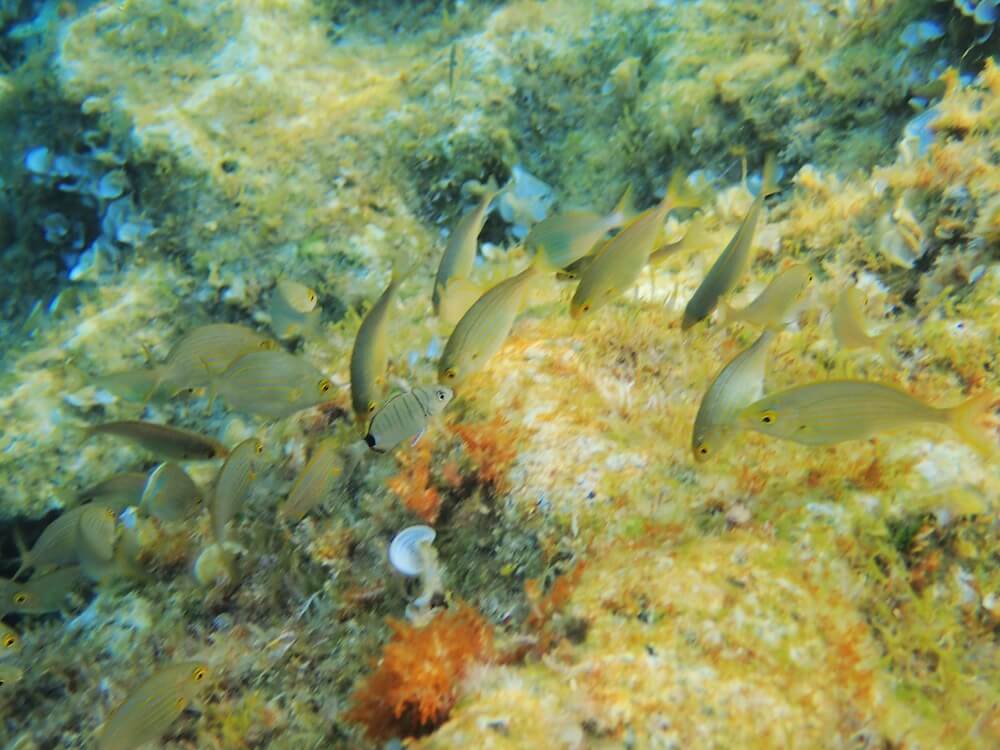 Les sars, les saupes, les oblades, les rougets, et les girelles (la girelle commune et la girelle paon) sont tous très communs sur ce spot. Plus rarement, on croise autour des rochers un poisson-perroquet de Méditerranée ou une petite rascasse brune.