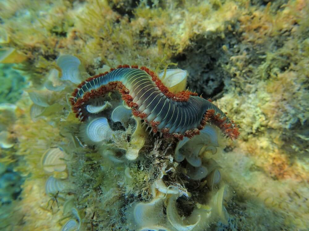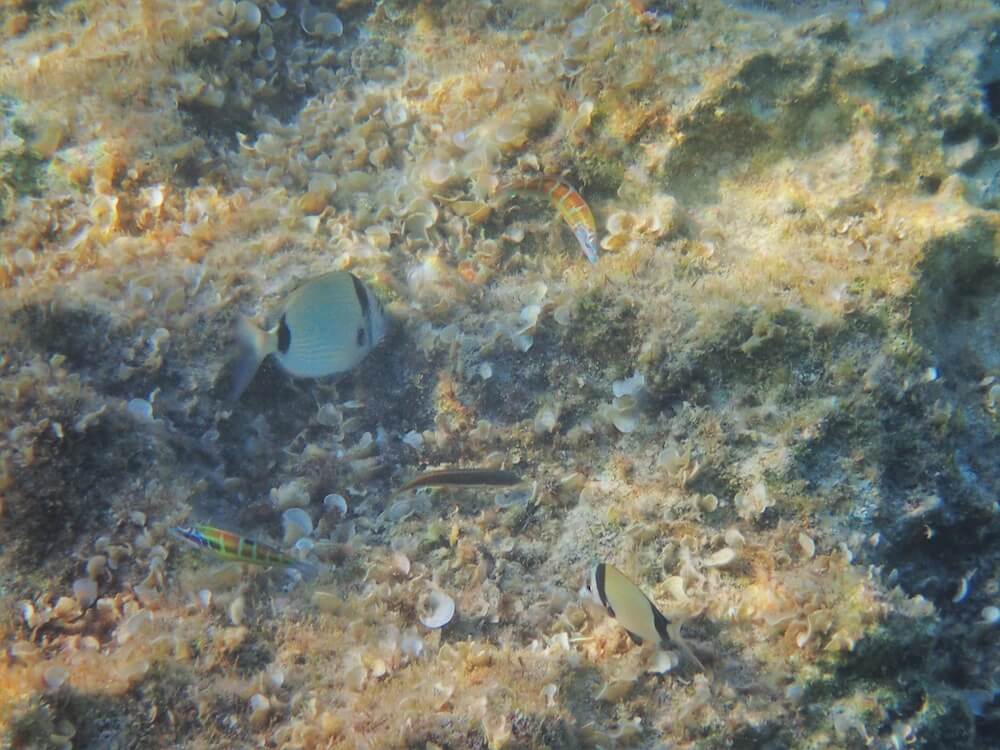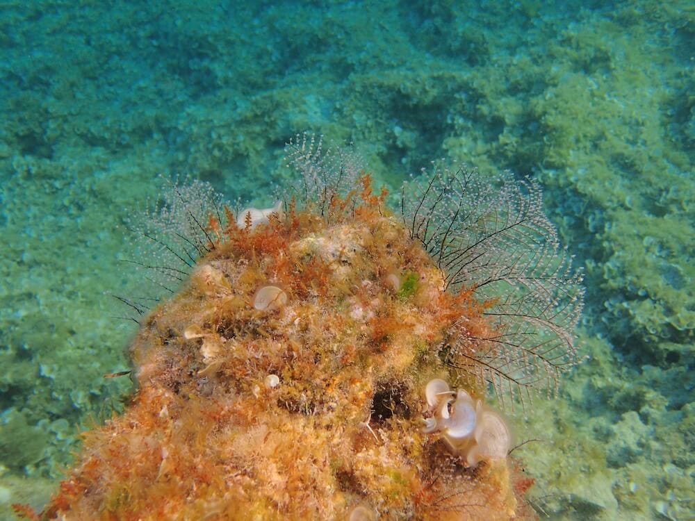 Sur ce spot, l’eau est limpide, et il n’y a pas de courant particulier (à peine un peu de courant quand on s’avance vers le nord). On vous conseille de vous rendre à La Bussola le matin ou en journée car en fin d’après-midi, cette partie du littoral se retrouve à l’ombre.