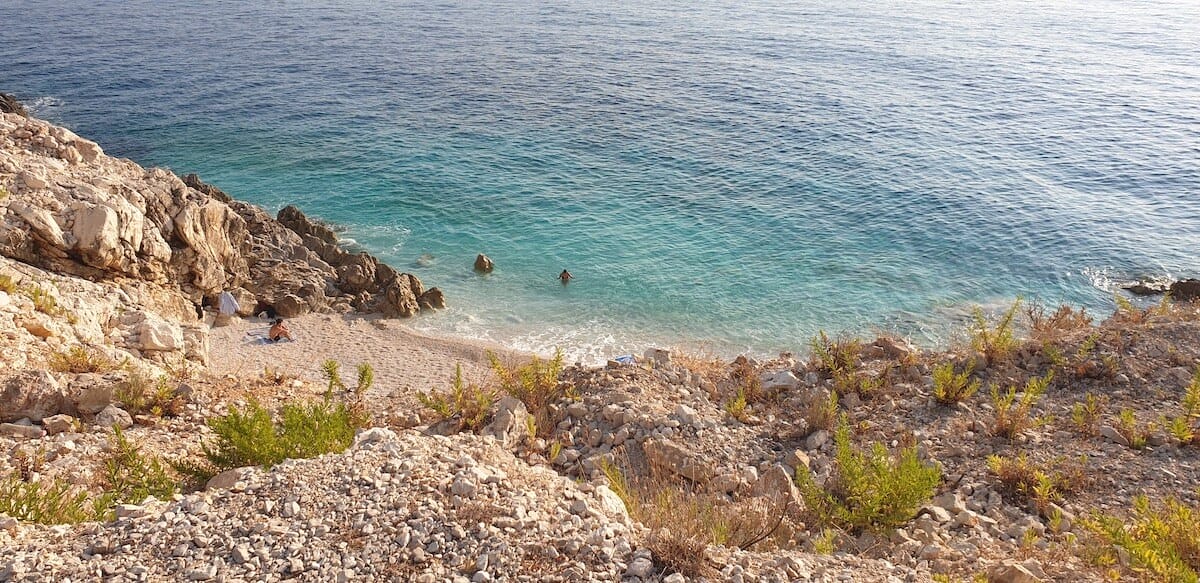La plage de Lambjano est isolée et complètement naturelle. Pensez à amener de l’eau, surtout si vous devez remonter vers la route principale à pied.