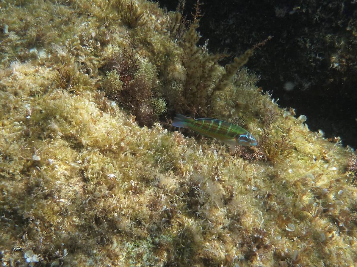 Au fil de votre balade sous-marine, vous ne manquerez pas les girelles paon, virevoltant par dizaines autour des tombants. Les saupes, formant des bancs parfois importants, traversent les eaux bleues de la baie en passant de rocher en rocher.