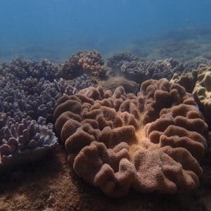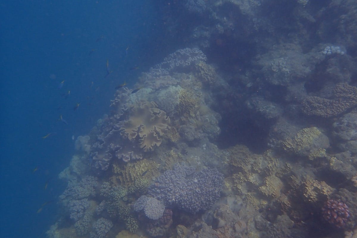 Ce sont désormais principalement des coraux mous (notamment des coraux cuir) qui recouvrent le platier. Par endroits, le récif reste tristement nu, sans coraux.