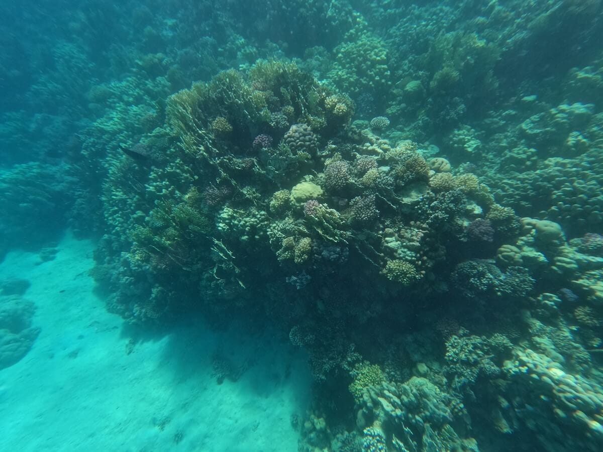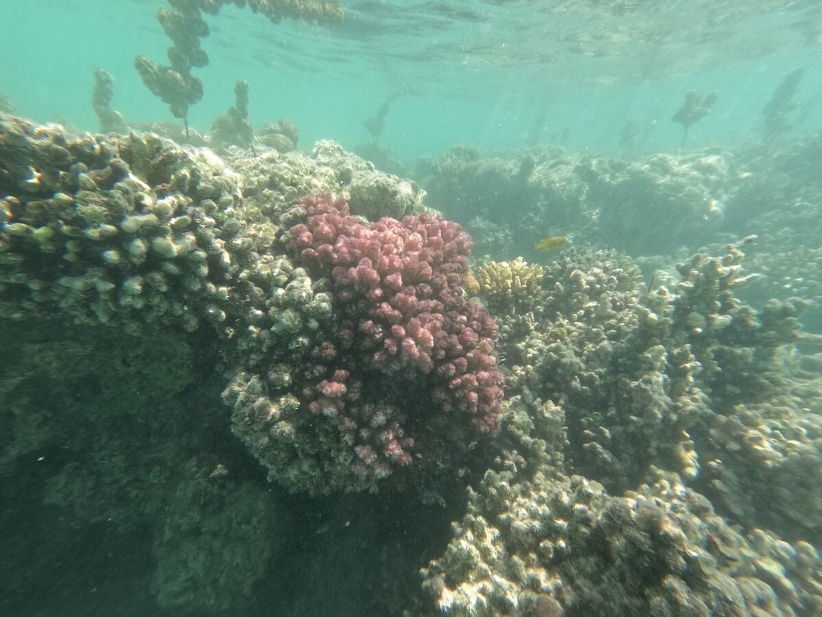 Le tombant récifal, accessible via le ponton du Stella Makadi, abrite les coraux les plus préservés (zone de snorkeling 1 sur la carte). Dans cette zone, la profondeur varie de 0,5 mètre au sommet du récif à plus de 6 mètres sur les pentes. Bien que dans des conditions variables, vous trouverez des massifs de corail digité, de corail de feu, de corail cerveau, ainsi que du corail branchu.