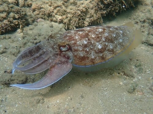 Plus occasionnellement, on voit à Césarée des girelles paon, des petites murènes, des bourses garnales (exotique) et même des seiches (dont la seiche pharaon, encore une espèce originaire de Mer Rouge) et des petits poulpes.