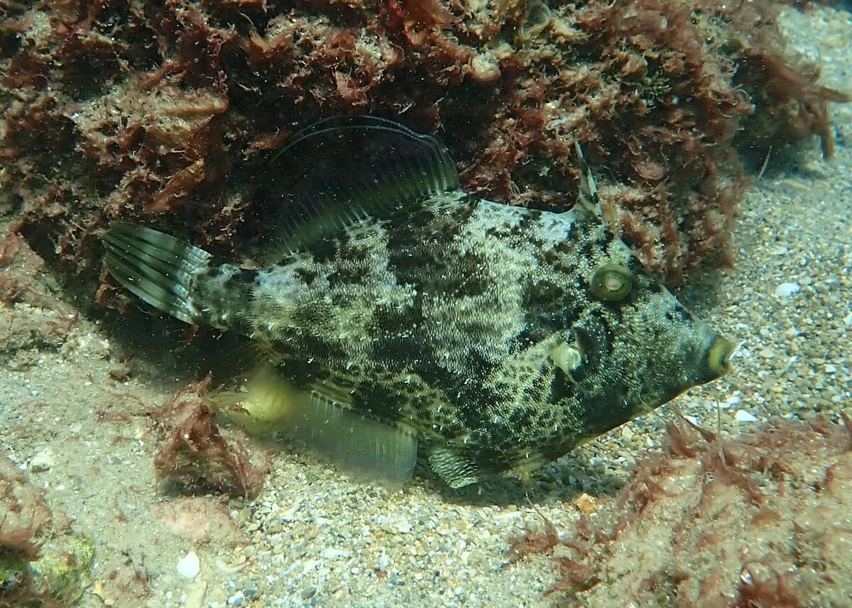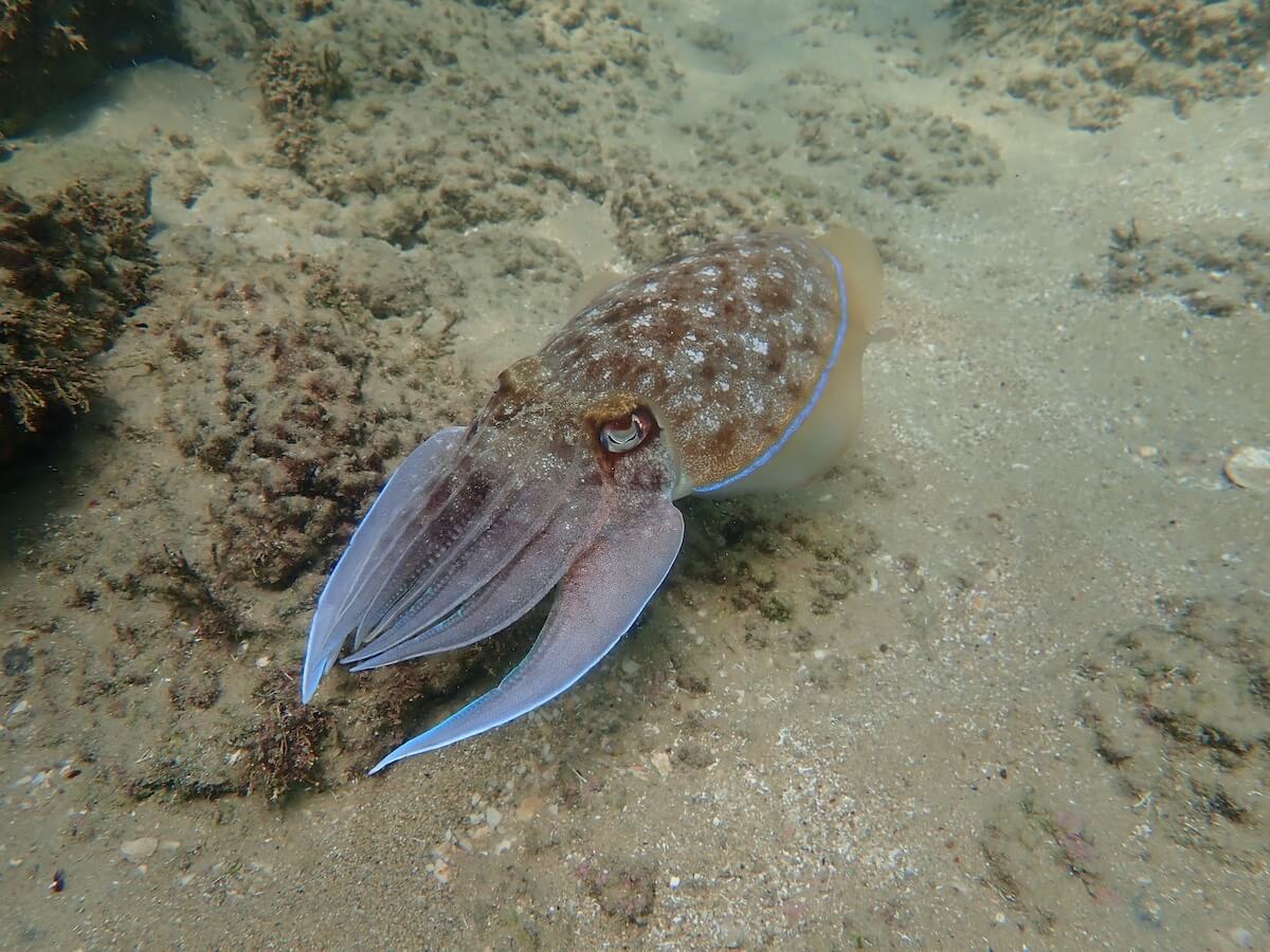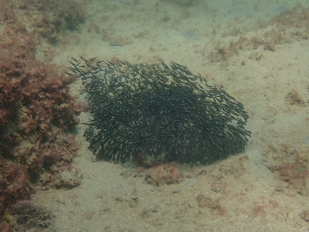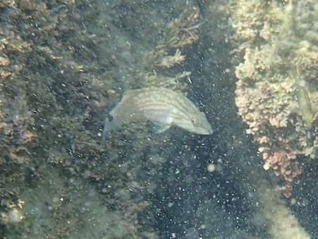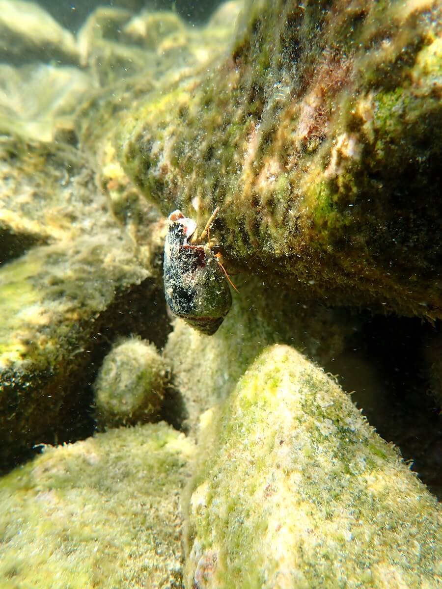 La partie la plus poissonneuse se trouve le long de l’ancien quai, où des dizaines de sars communs, de poissons lapins et de rougets de Mer Rouge (les deux derniers étant des espèces exotiques invasives) nagent au dessus des rochers.