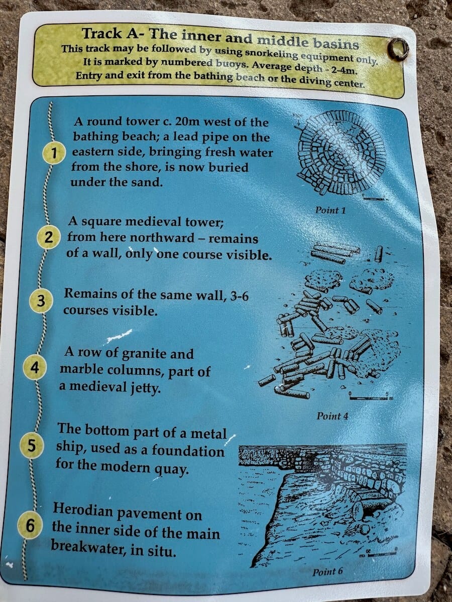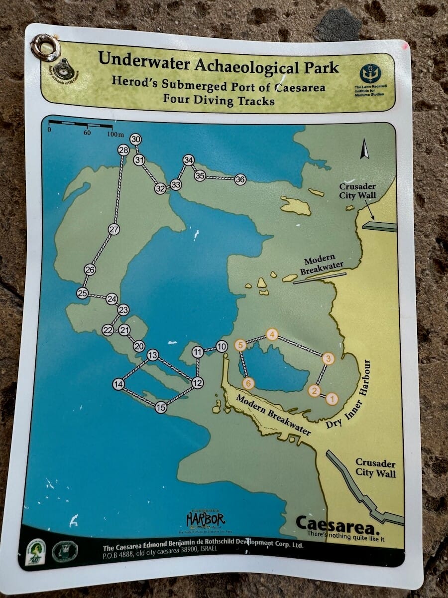 Césarée est un ancien port romain situé sur la côte méditerranéenne d’Israël. En plus des vestiges archéologiques, on trouve aujourd’hui sur le port plusieurs restaurants, ainsi qu’un club de plongée.