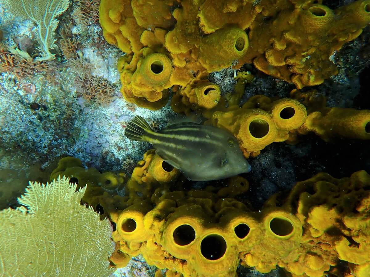 Les fonds marins du Phare de Vieux fort sont spectaculaires, avec des reliefs variés et de nombreux coraux, gorgones et éponges visibles à faible profondeur. La quantité et variété de poissons rappelle celle des Ilets Pigeon, ou Réserve Cousteau.