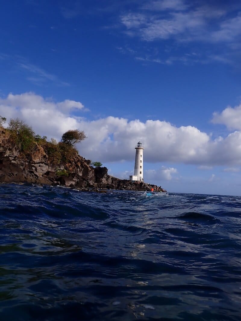 La pointe rocheuse où se trouve le phare marque l’entrée dans la rade de Basse-Terre. Ce spot est ainsi généralement protégé des vagues, contrairement à la zone située à gauche du phare, très agitée. Ne vous mettez pas à l’eau si les conditions de mer ne sont pas idéales sur le récif.