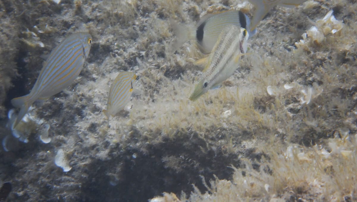 Même si ce spot n’est pas situé dans une réserve, il abrite un écosystème particulièrement riche, avec de nombreuses espèces de poissons. En palmant de rocher en rocher, vous surprendrez tour à tour des sars communs, des girelles, des mulets, et peut-être même un petit barracuda ou un labre nettoyeur de Méditerranée occupé à débarrasser un plus gros poisson de ses parasites.
