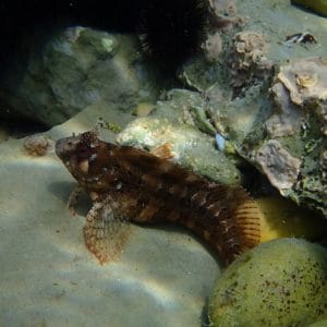 Ces fonds rocheux sont appréciés des blennies, notamment le blennie gattorugine (ou cabot), présent en populations importantes sur toute la zone. Peu farouche et très territorial, on le trouve souvent posté immobile sur les rochers.