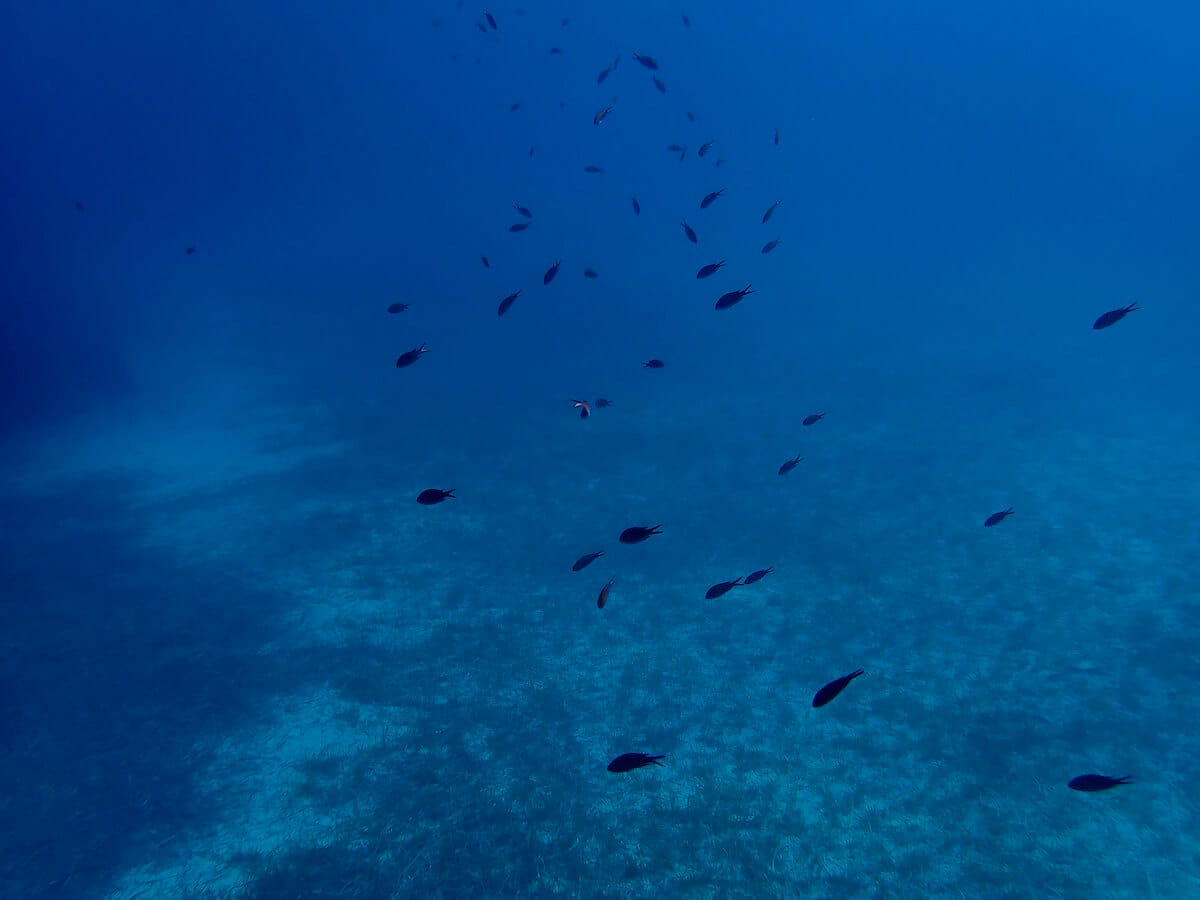 Au départ de la plage, le sable descend en pente douce. Palmez vers les rochers et longez le littoral. Vous découvrirez une succession de fonds rocheux, de fond sableux, d’algues et d’herbiers de posidonie, chacun avec leurs espèces associées.
