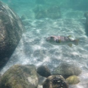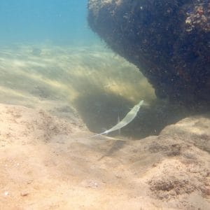 Ce spot, assez isolé, permet d’observer une grande diversité de poissons. Autour des rochers, vous verrez tour à tour des sergents majors, plusieurs espèces de poissons-ballons et porc-épic, des poissons-flûtes, et la très colorée girelle arc-en-ciel.