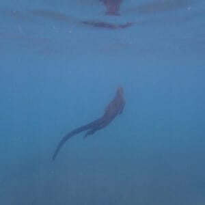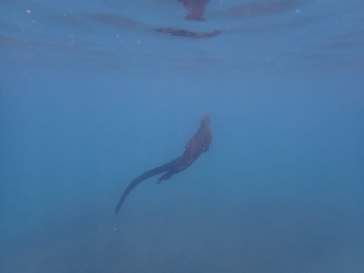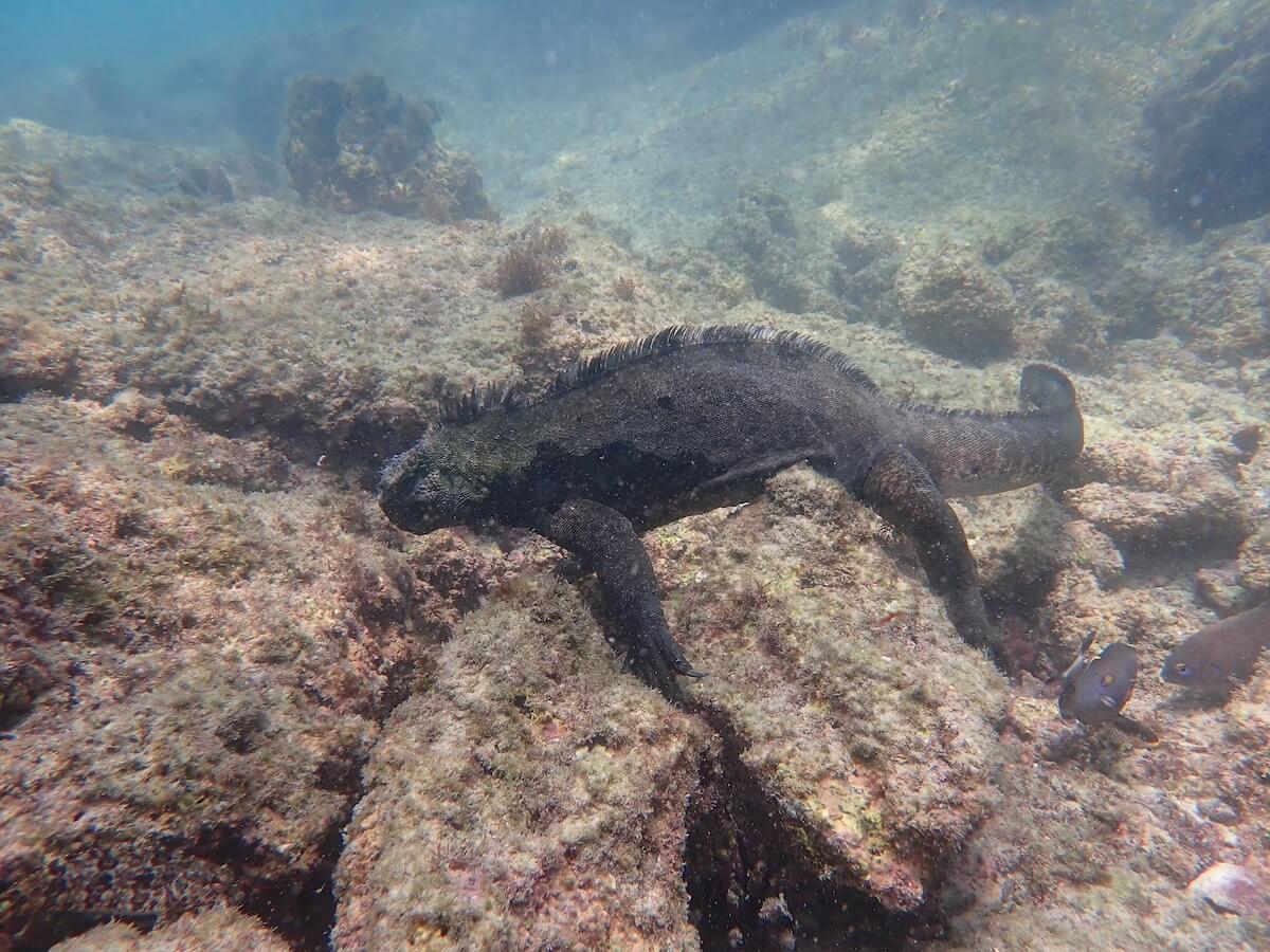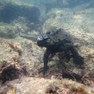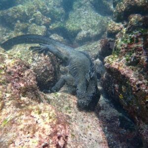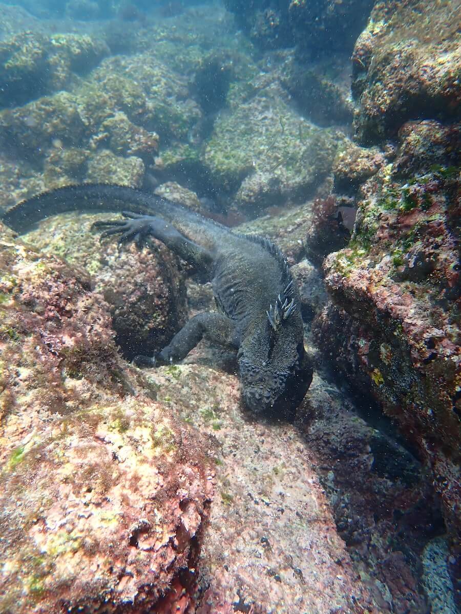 A Punta Espinoza, les iguanes marins sont généralement observés à une profondeur de 2 à 4 mètres, accrochés aux rochers avec leurs longues griffes. Ils peuvent rester plusieurs dizaines de minutes sous l’eau sans remonter à la surface pour respirer.
