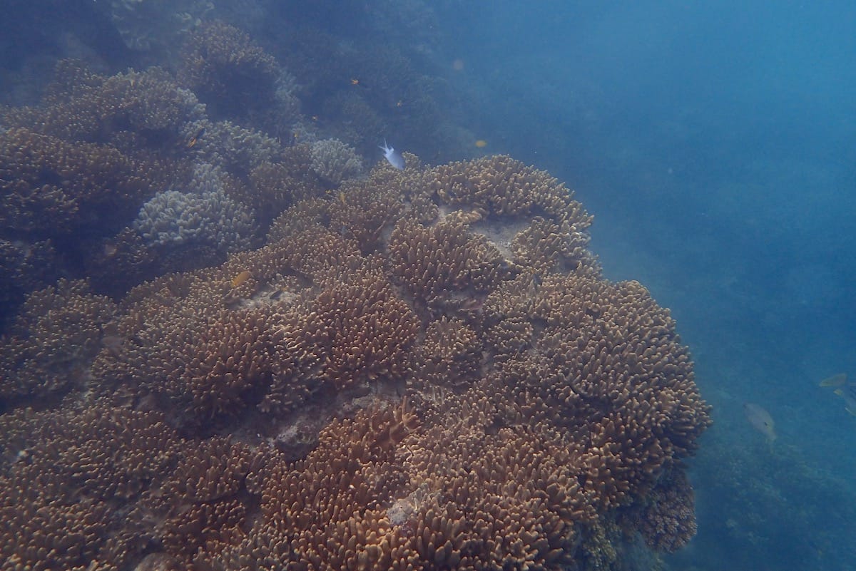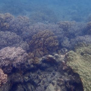 Ce sont désormais principalement des coraux mous (notamment des coraux cuir) qui recouvrent le platier. On trouve également de beaux massifs de coraux à croissance rapide, comme le corail de feu. Par endroits, le récif reste tristement nu, sans coraux.