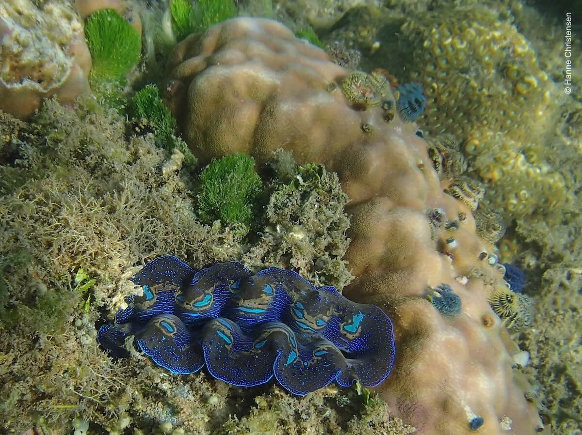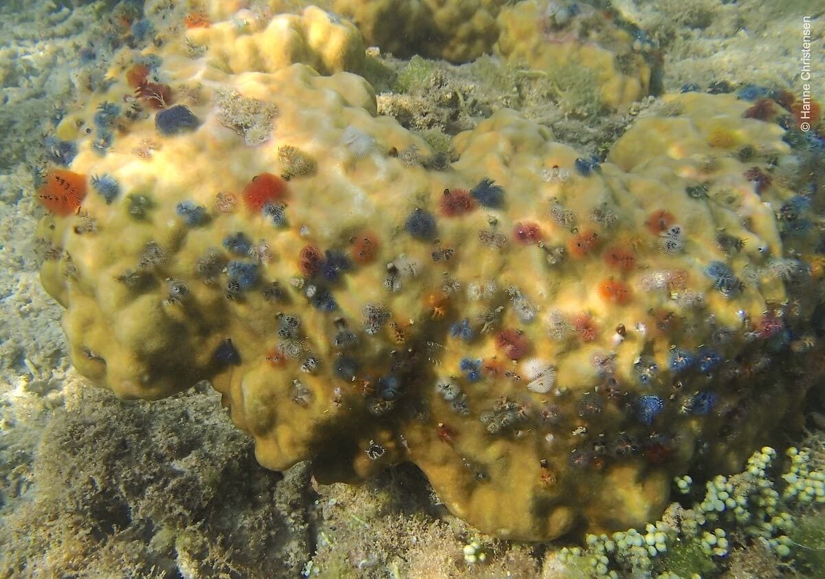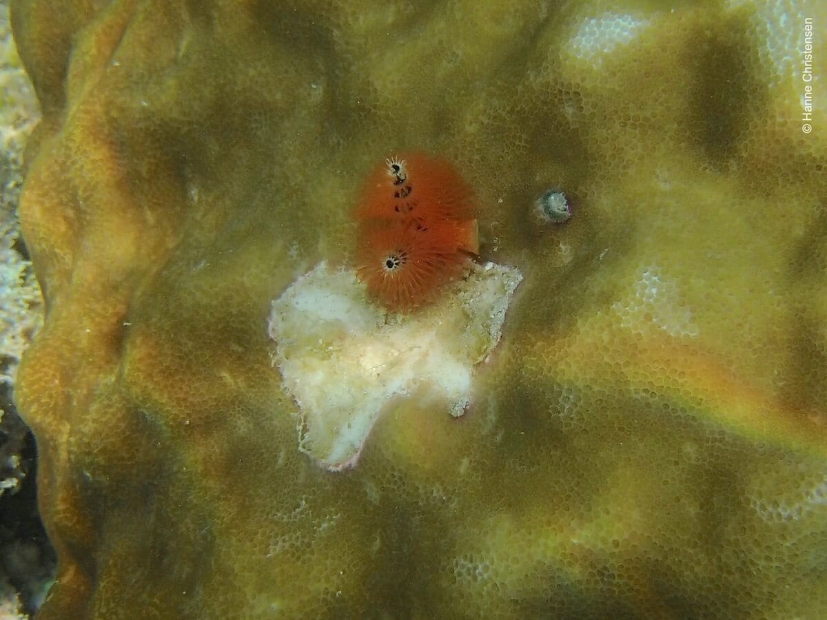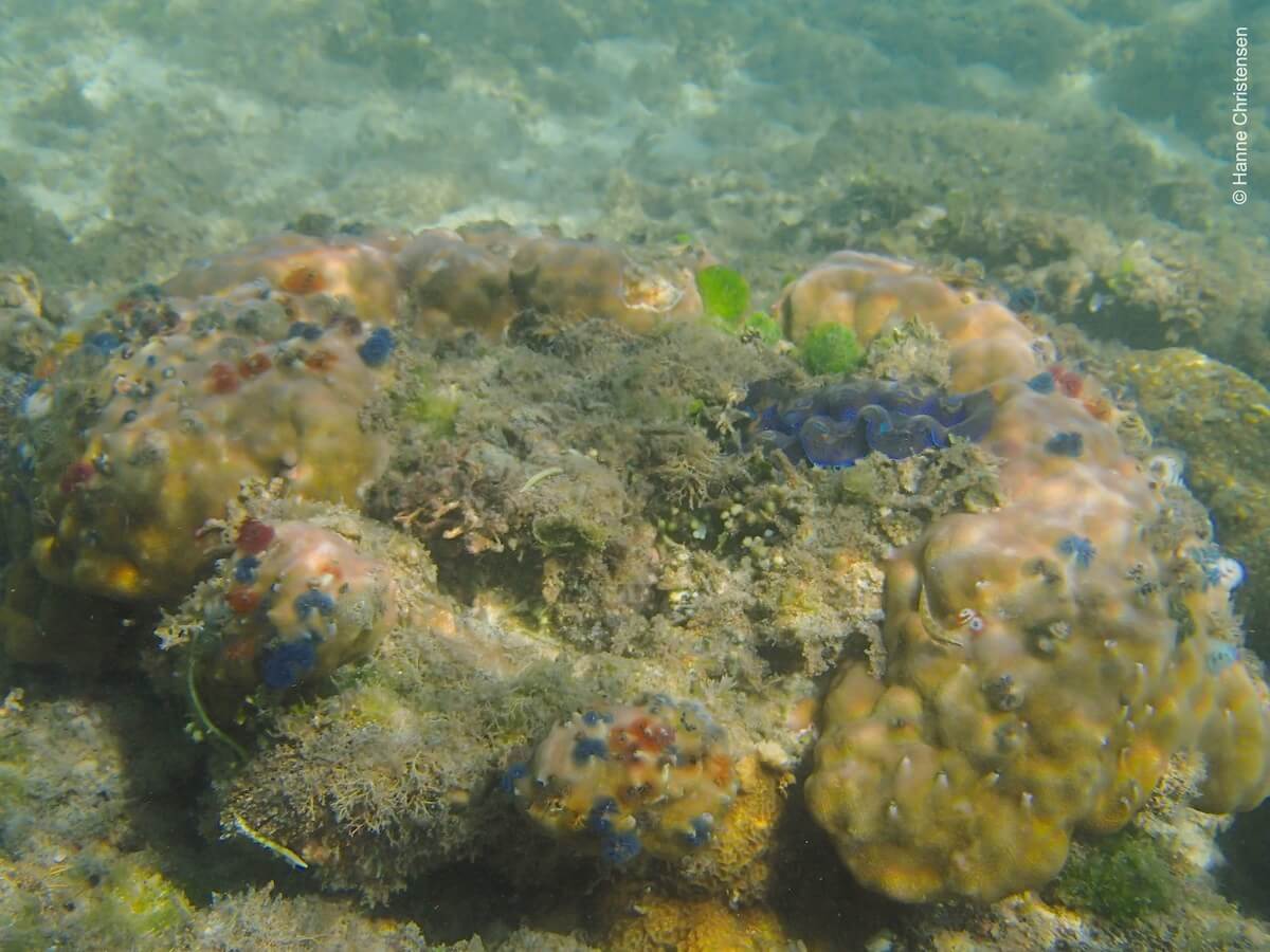 En partant du bord, on peut explorer un récif peu profond (↕1-3m), toutefois assez pauvre en coraux. Les fonds sont principalement parsemés de corail massif poreux, dans lequel sont incrustés des centaines de spirobranches-arbre de Noël de toutes les couleurs et de nombreux bénitiers.