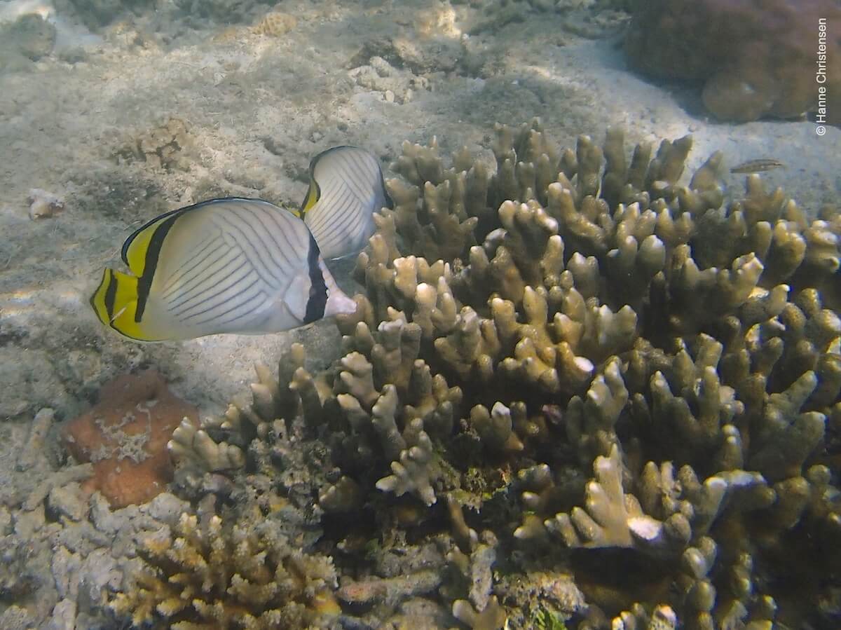 En parcourant le récif, vous rencontrerez des anémones de mer habitées par des poissons-clowns à trois bandes, communs sur ce spot. On y observe aussi plusieurs espèces de poissons-papillons, de picots, de labres, de demoiselles et de poissons-perroquets. De temps à autre, on rencontre de petits mérous longues ailes camouflés sur les fonds.