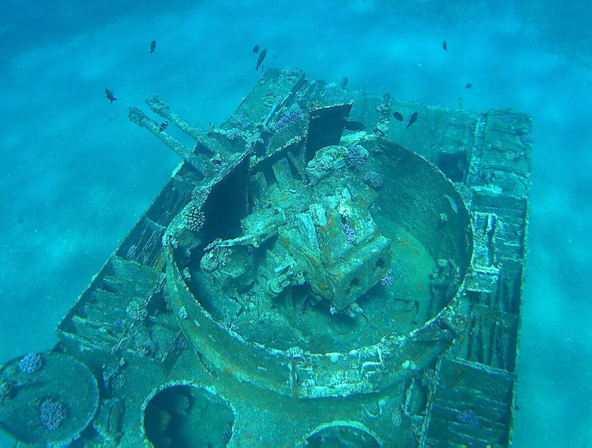 Si vous avez du mal à le trouver, essayez de repérer les autres snorkeleurs et les bateaux de plongée qui sont souvent stationnés à proximité. Un avion a également été immergé au sud-ouest du tank, mais il est un peu profond pour en profiter pleinement en palmes-masque-tuba.