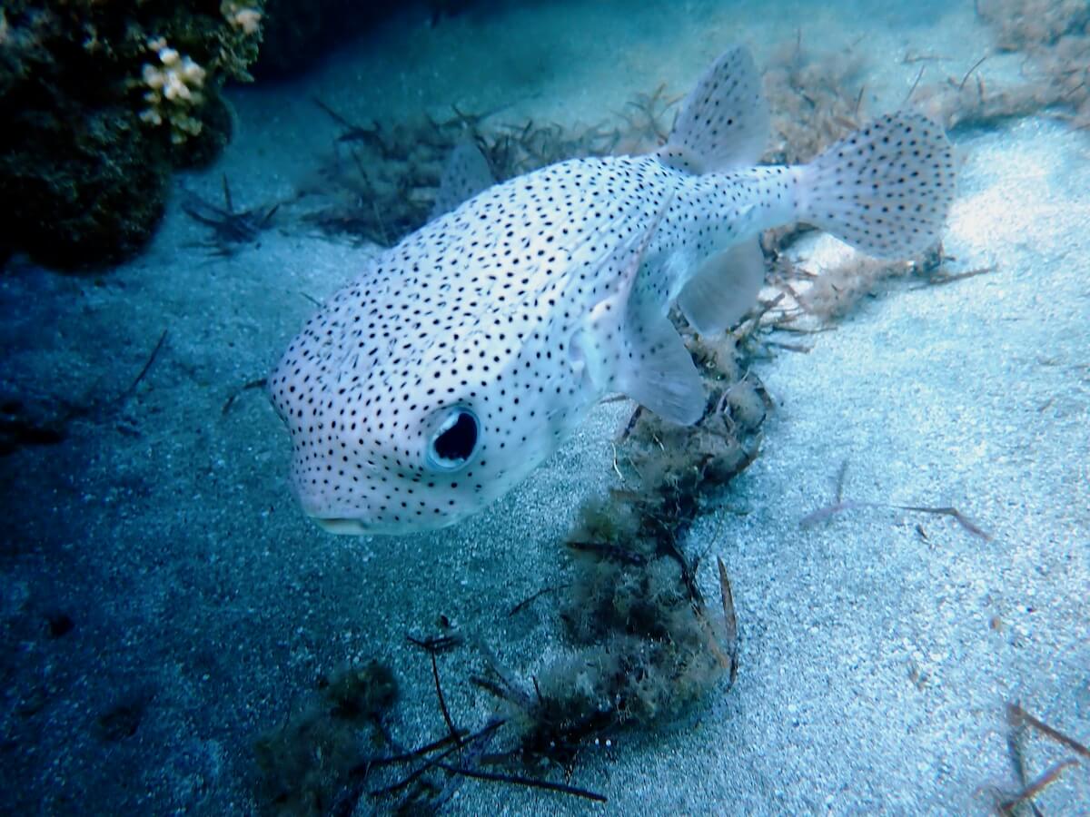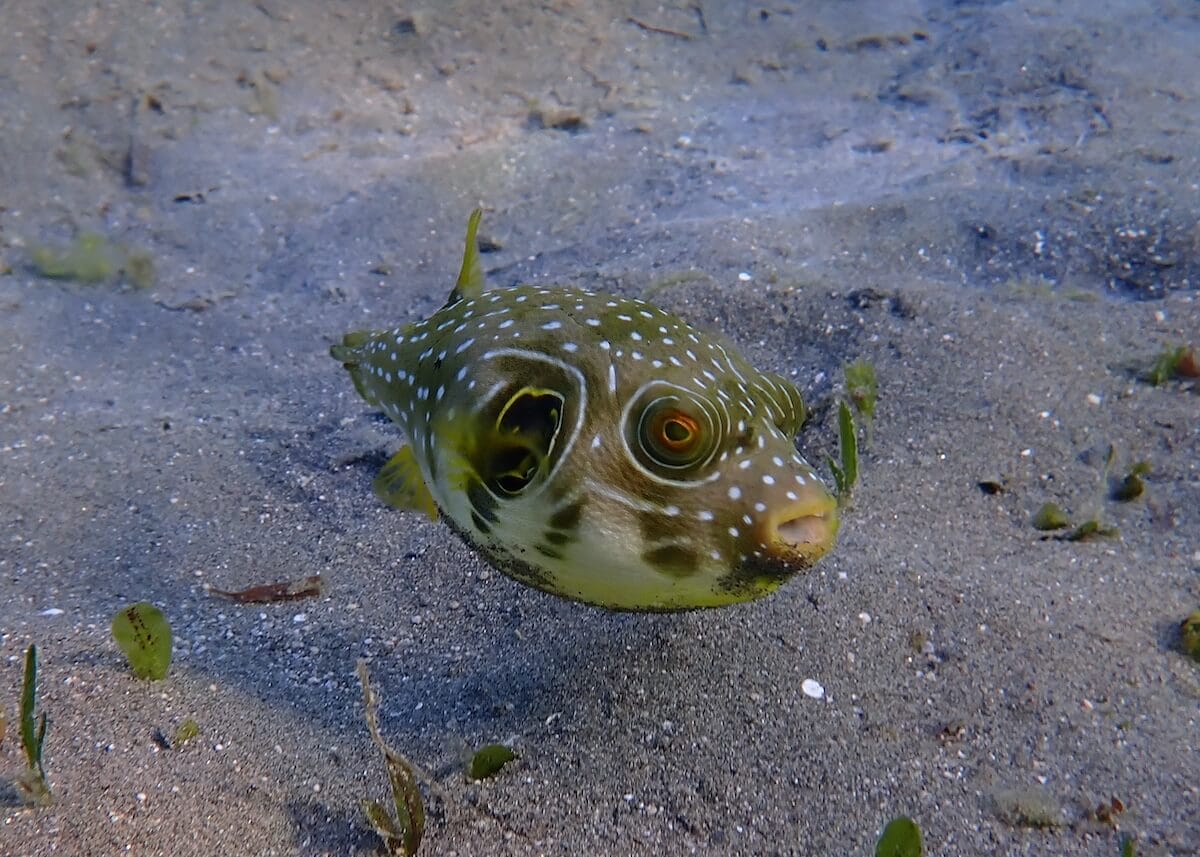 Les herbiers sont visités par d’autres espèces telles que les poissons-ballons, les canthigasters et les turbots.