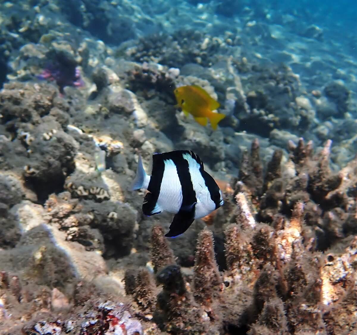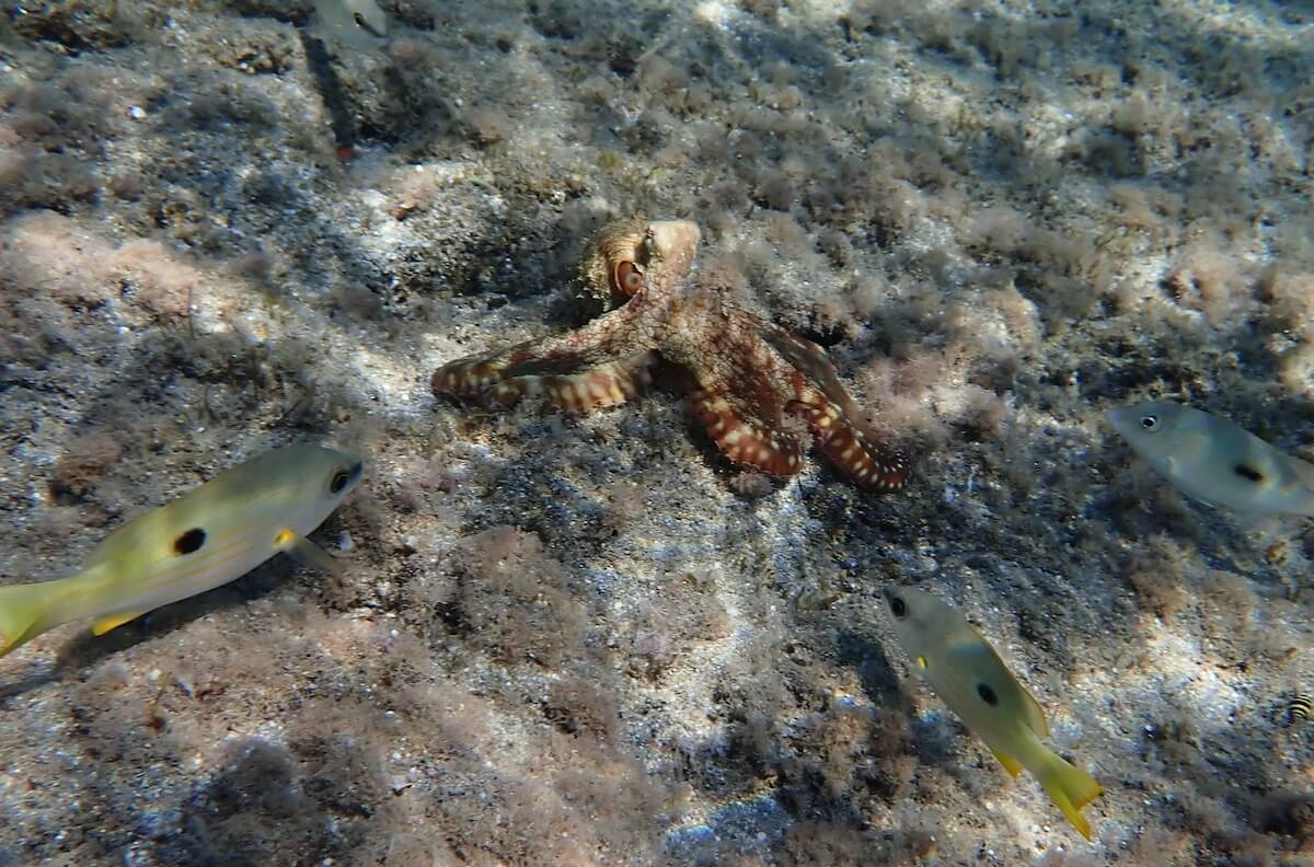 Malgré tout, la vie sous-marine reste extrêmement riche, et comprend une centaine d’espèces de poissons récifaux, des poulpes, et d’autres invertébrés.