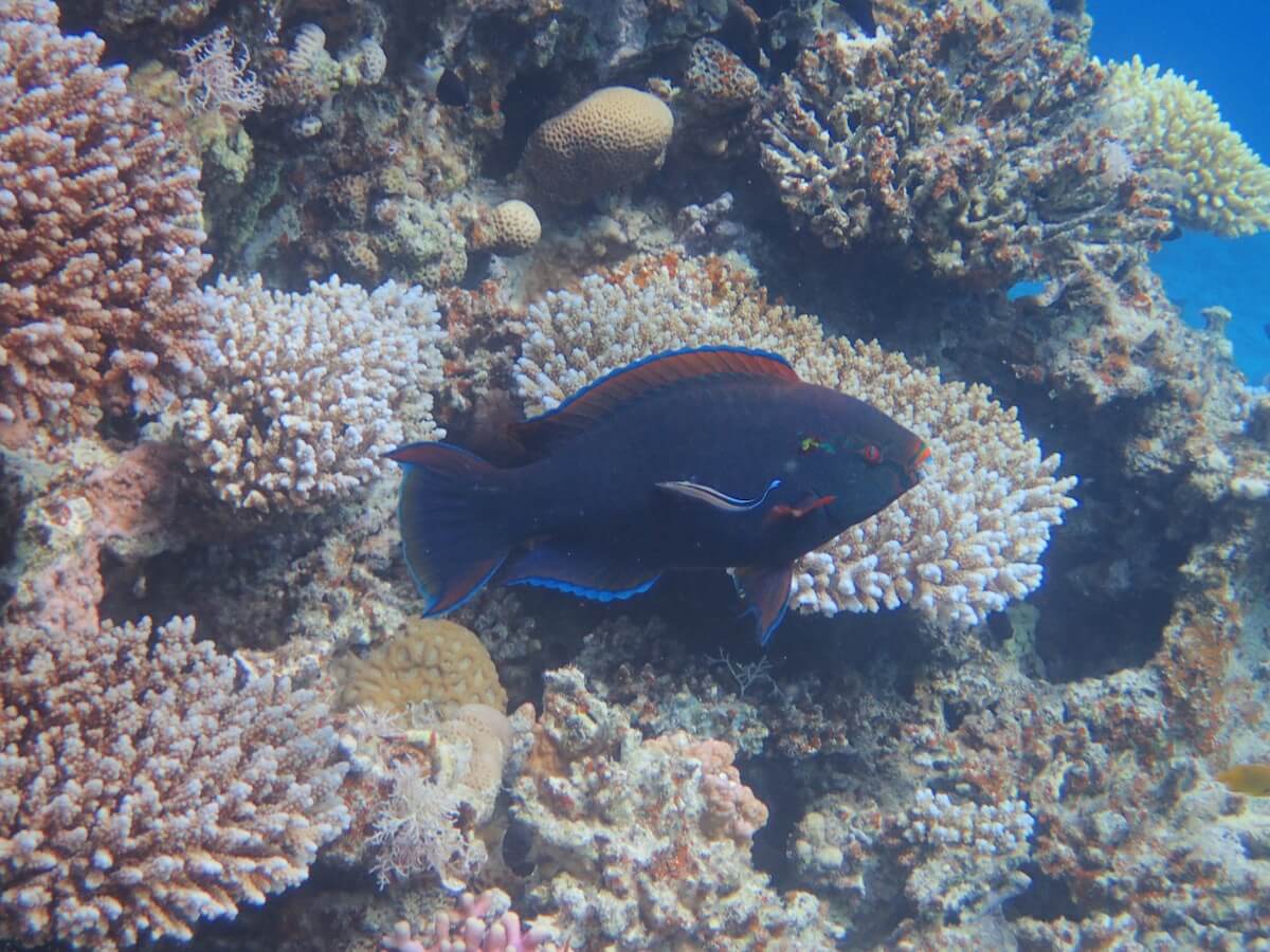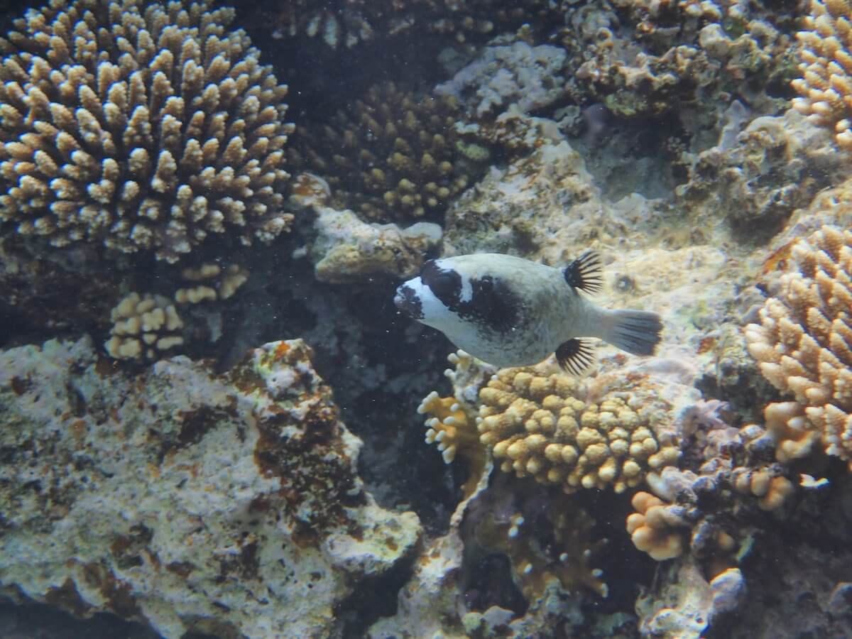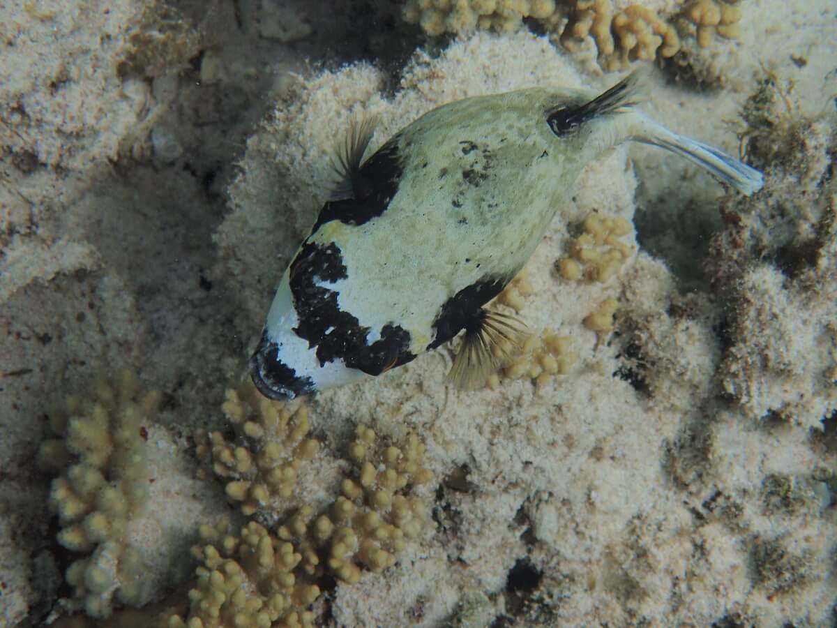 Une fois dans l’eau, commencez par explorer le lagon. Calme et peu profond, la hauteur d’eau n’y excède pas 2m. Les fonds du lagon sont assez pauvres et la vie sous-marine se concentre sur ses bordures, colonisées par du corail. De nombreux poissons-lions et poissons-scorpions à raies blanches se cachent dans ces zones, de même que plusieurs espèces de poissons-écureuils.