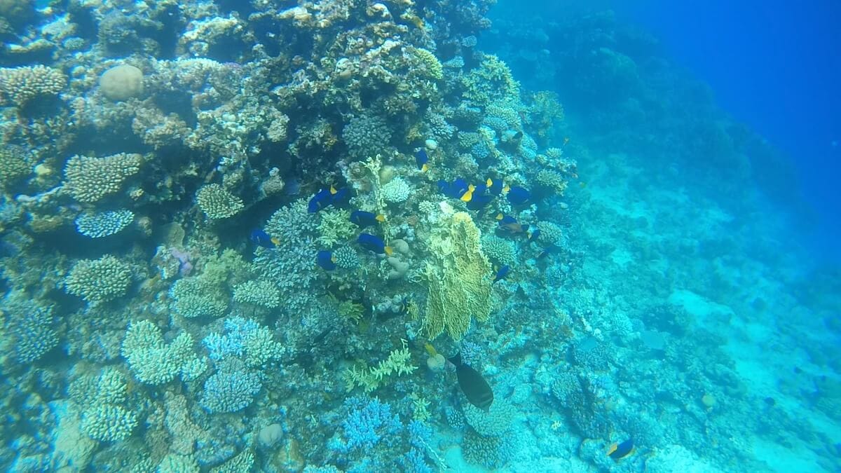 De nombreux poissons récifaux vivent sur le tombant, notamment des poissons-perroquets, des poissons-clowns à deux bandes dans leur anémone, plusieurs espèces de poissons-ballons et poissons-coffres, ainsi que des labres.