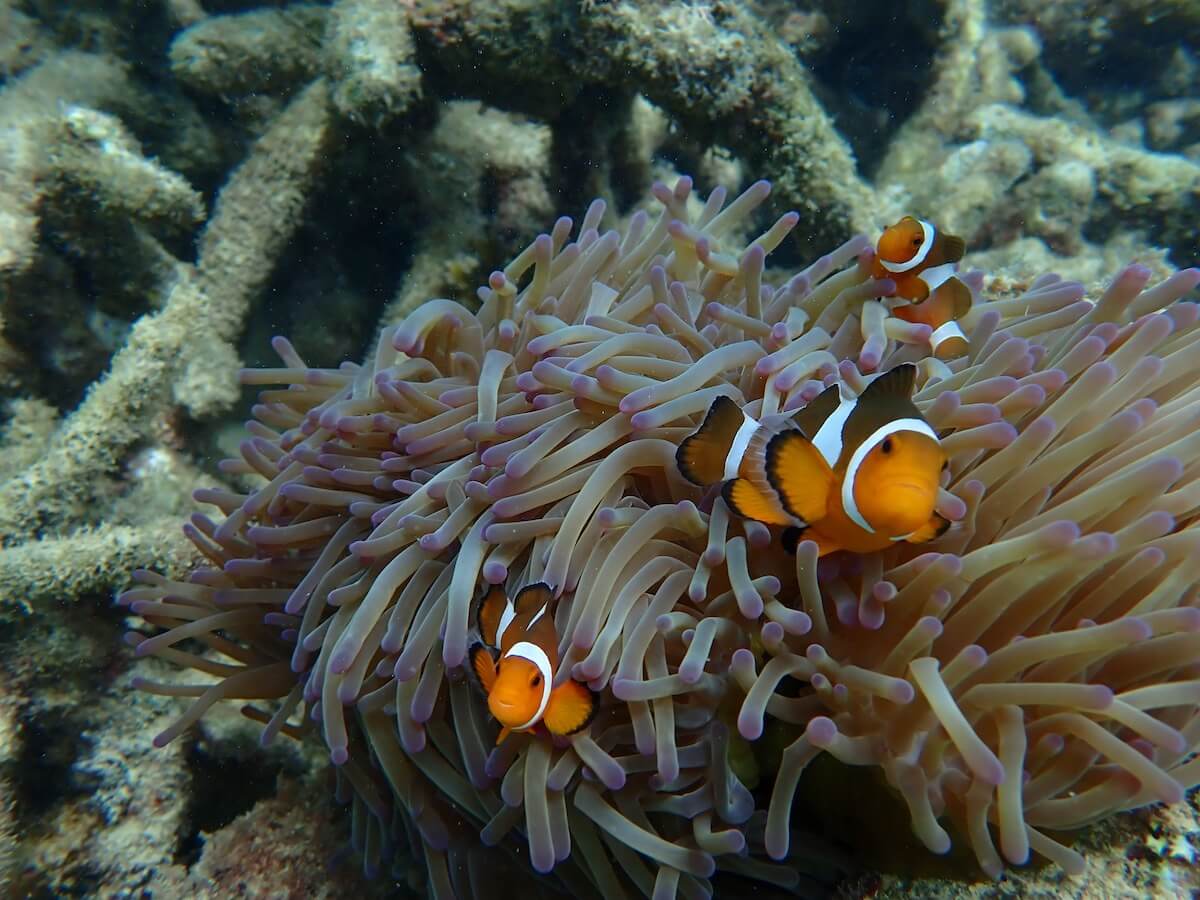 Les zones récifales comprennent de nombreuses anémones de mer dans lesquelles vivent des poissons-clowns. Au moins trois espèces différentes sont présentes sur ce spot: le poisson-clown à trois bandes, le poisson-clown de Clark, et le poisson-clown rouge (voir liste des espèces en bas de page).