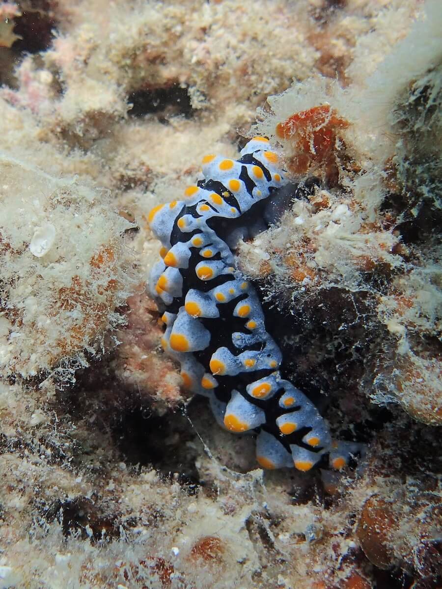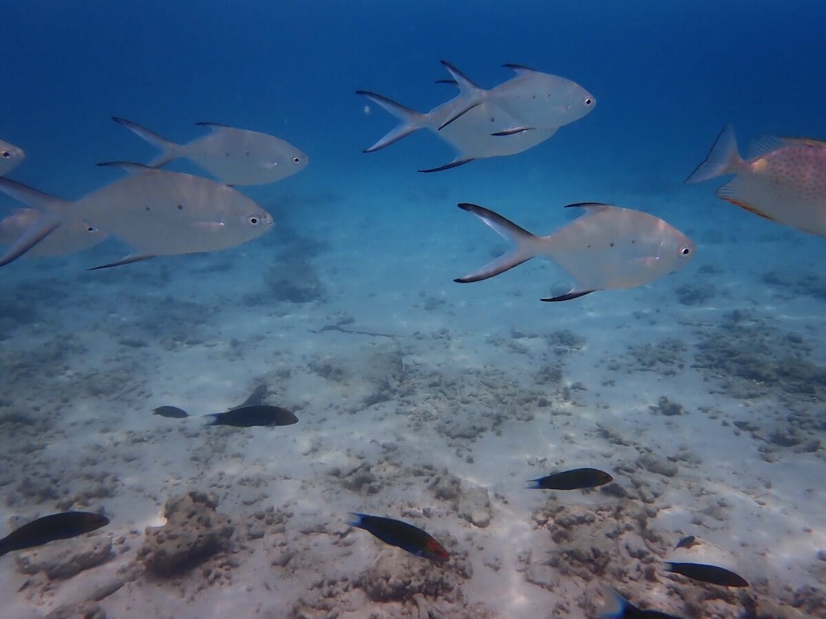 Vous pouvez aussi explorer la zone du ponton du Parc Marin, à la limite ouest du spot. Des bancs de milliers de fusiliers peu farouches se réfugient à l’ombre de la plateforme et autour des piliers, où l’on voit aussi des poissons cerf-volants et des sergents majors. Restez à distance de l’extrémité du ponton, qui n’est pas protégée par des bouées.