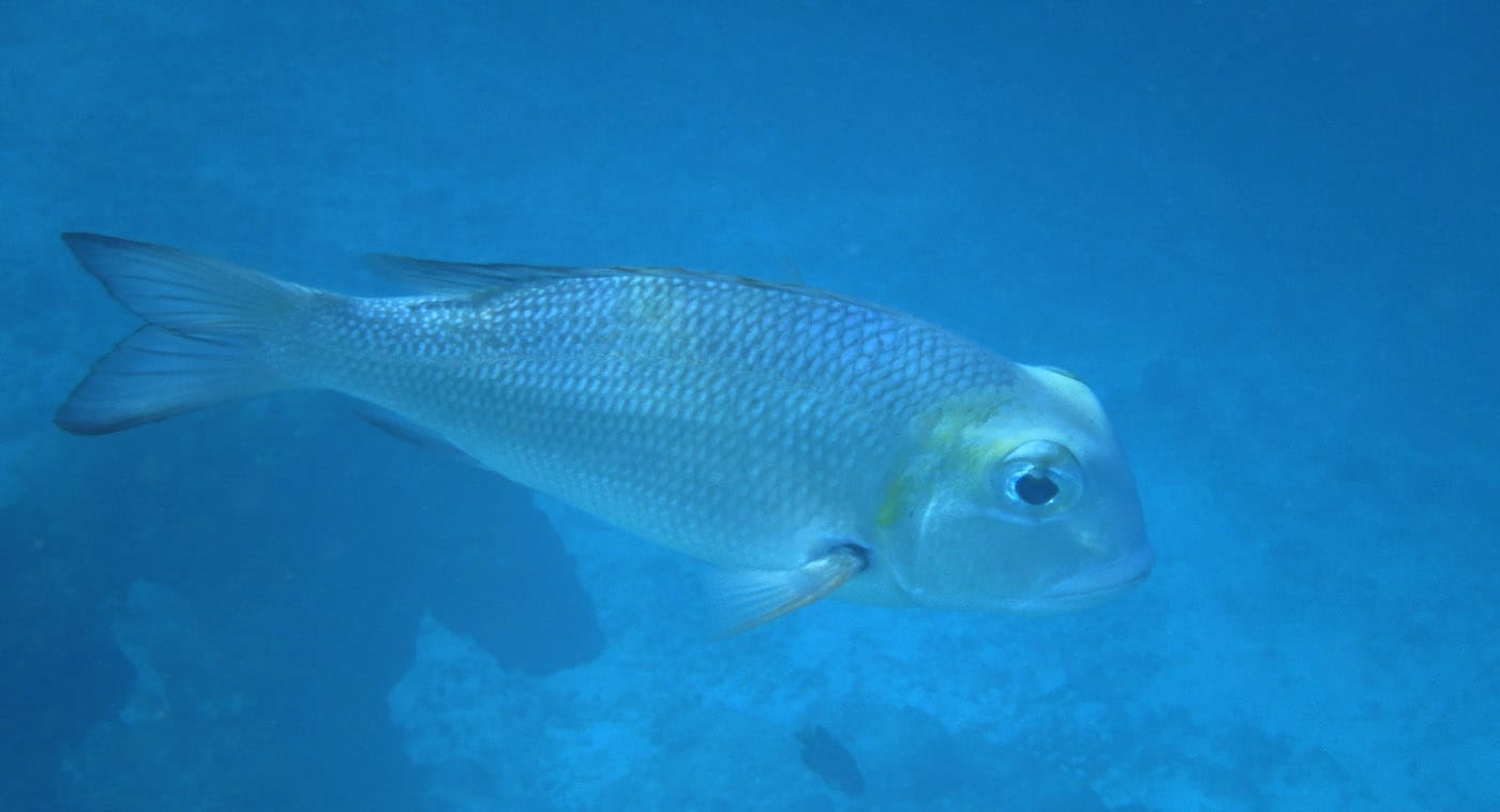 De nombreux poissons perroquets parcourent le récif, notamment le très beau perroquet à gorge verte. Parfois, on surprend un groupe d’empereurs, un banc de chirurgiens bagnards, ou un petit requin à pointes noires qui fuse sur les fonds.