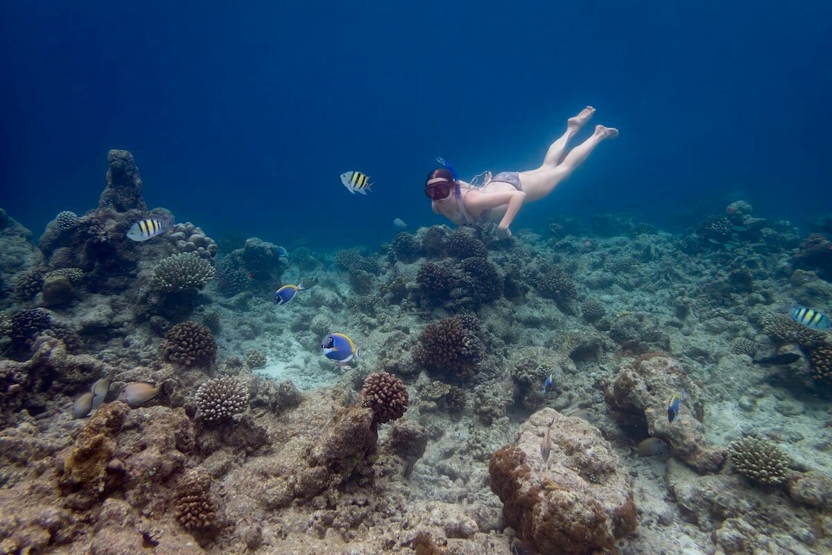 Située au nord de l’Atoll Ari, la petite île habitée d’Ukulhas est une bonne option si vous souhaitez faire du palmes-masque-tuba gratuitement depuis la plage aux Maldives. Le tombant qui s’étend sur plus de 650 mètres à l’ouest de l’île offre de belles possibilités d’observation, sans devoir s’éloigner trop de la plage. Une multitude de poissons tropicaux, de petits requins et parfois des tortues vous y attendent juste sous la surface de l’eau.