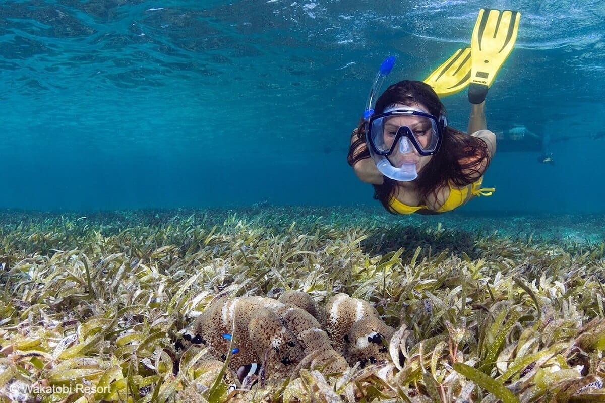 Avec son platier couvert d’herbiers marins et son fabuleux tombant corallien, le récif du Wakatobi Resort est un spot de snorkeling de classe mondiale. Ici, au cœur du Parc National Wakatobi, vous pourrez rencontrer juste sous la surface de l’eau des poissons-anges, des tortues, des Napoléons, des poissons-clowns, des serpents, et environ 200 espèces plus ou moins communes de poissons récifaux.