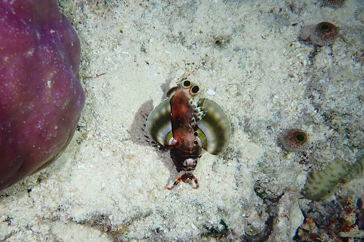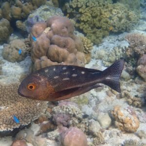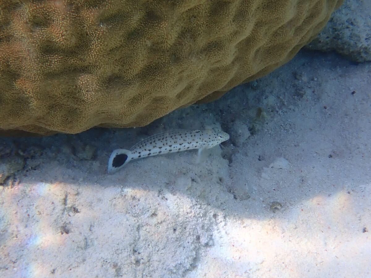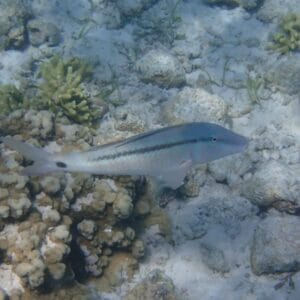 Les balistes, poissons-limes et rougets apprécient quant à eux les herbiers, où il est aussi facile de voir l’une des raies pastenague à points bleus qui ont élu domicile sur le récif. Vous les verrez d’ailleurs souvent depuis la jetée, occupées à fouiller les fonds sableux.