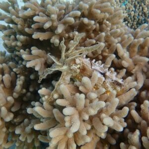 Dans les débris au pied du ponton, il n’est pas rare de rencontrer des synganthes et des poissons-scorpions se confondant parfaitement avec les fonds.