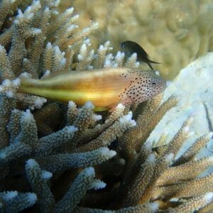 Les grottes et surplombs présents sur le haut du tombant hébergent de nombreux mérous. Plus bas, des vivaneaux et des gaterins stationnent près du mur récifal. C’est aussi sur le tombant que vous aurez le plus de chances de voir un Napoléon, une tortue verte, un tricot rayé, ou des espèces plus pélagiques. Au total, plus de 200 espèces de poissons récifaux peuplent le récif du Wakatobi Resort.