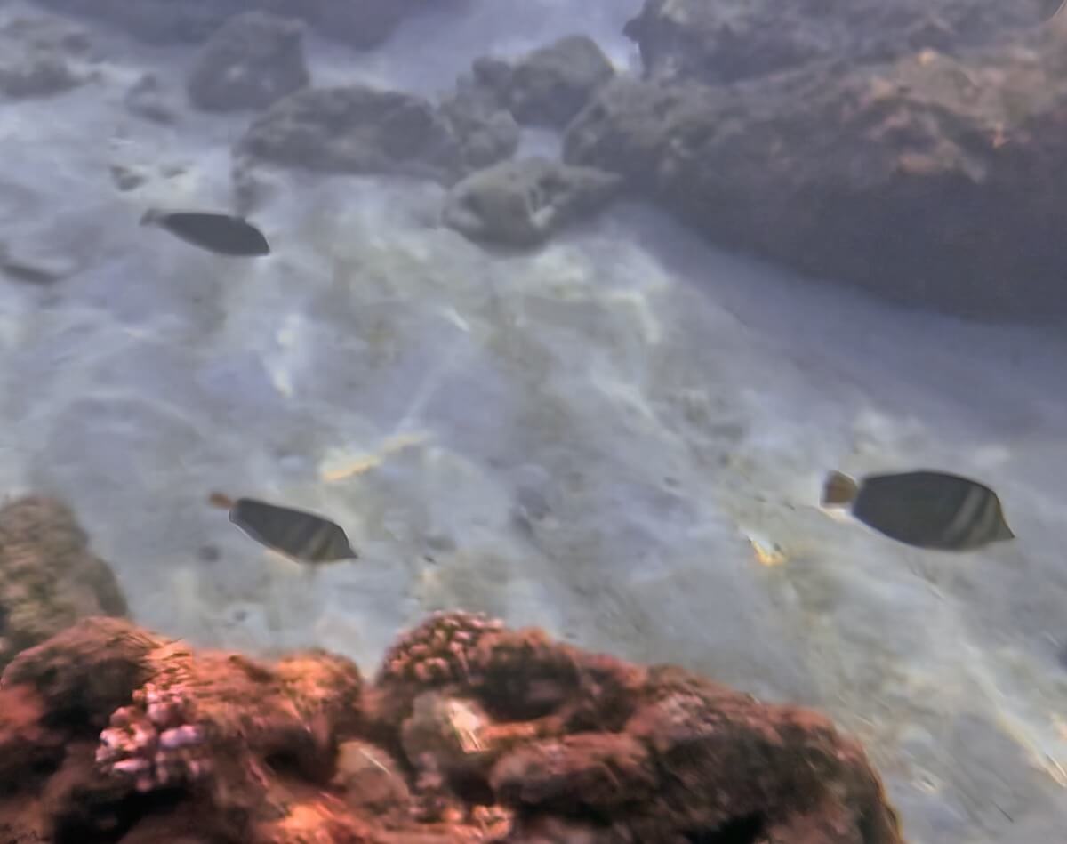 La zone de snorkeling s’étend entre la digue du port de pêche sur la gauche et la jetée en béton sur la droite. De nombreux tripodes en béton sont disposés à chaque extrémité de la plage. Ne vous éloignez pas trop de la plage (70 à 100 mètres maximum).