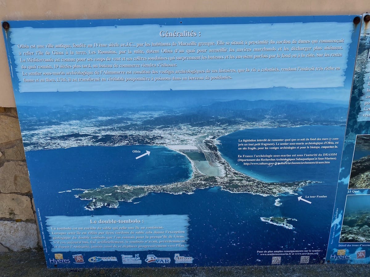 The archaeological site of Olbia is located in Hyères, on the northwest side of the Giens peninsula. The land site (open seasonally, entrance fee) extends into the water, in front of Almanarre beach.