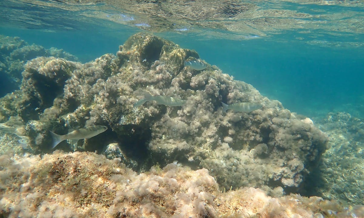 As you explore the historic remains of the site, you will come across many species of fish. Wrasse, for example, loves to swim around the large boulders of the Roman quay. In deeper areas (especially around La Tartane), sargo and damselfish are easy to see.