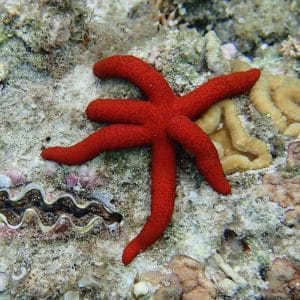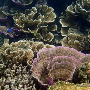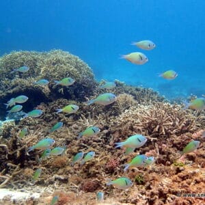 Aharen Beach reefs are overall well preserved, although some areas can be damaged. In the best-preserved areas, vibrant, bright-colored gardens await snorkelers. These areas support rich underwater life, including blue damselfish, pairs of butterflyfish, Moorish idols, and giant clams.
