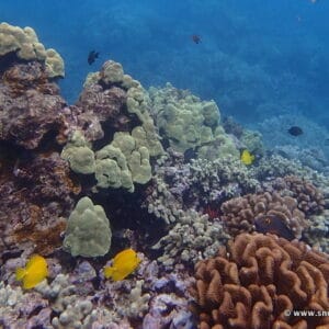 Swim across the area following one of the many shoals of yellow tang and Indo-Pacific sergeants slipping through the rocks. Among the most colourful species in this spot, you are likely to come across Hawaiian cleaner wrasse, several species of butterflyfish and bird wrasse, with their characteristic “beak”. You may see some green sea turtles, but to increase your chances, you should opt for Turtle Town, a stone’s throw away.