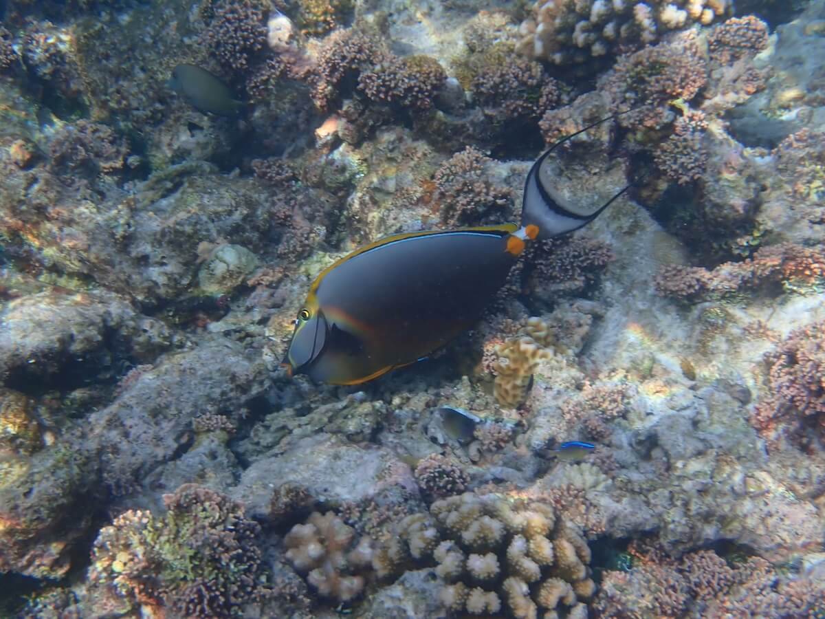 As you snorkel along the reef’s edge, you’ll encounter an array of coral formations, home to a variety of marine species. Colorful fish, including surgeonfish, triggerfish, butterflyfish, parrotfish, and many more dart in and out of the corals.
