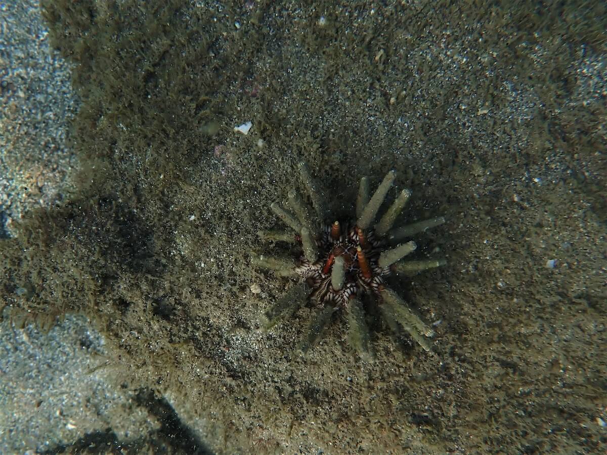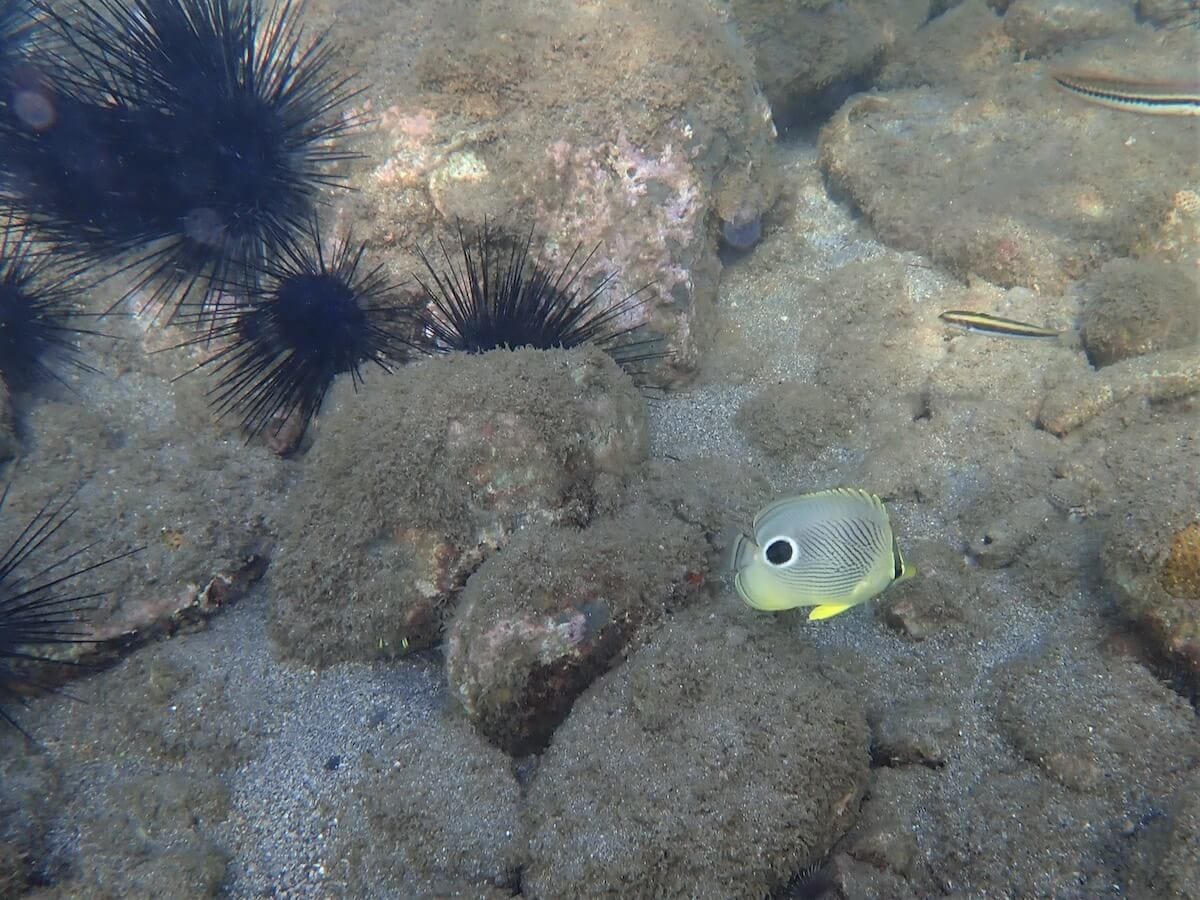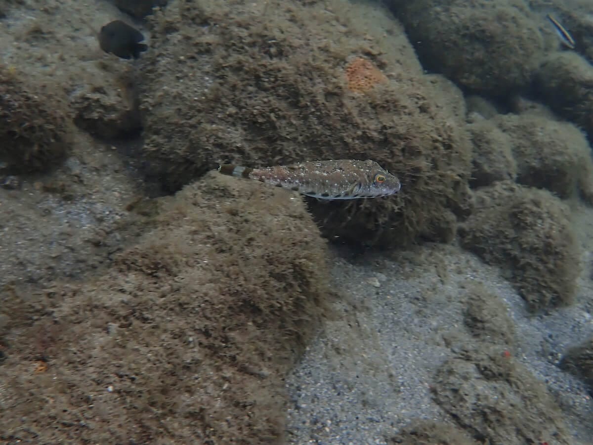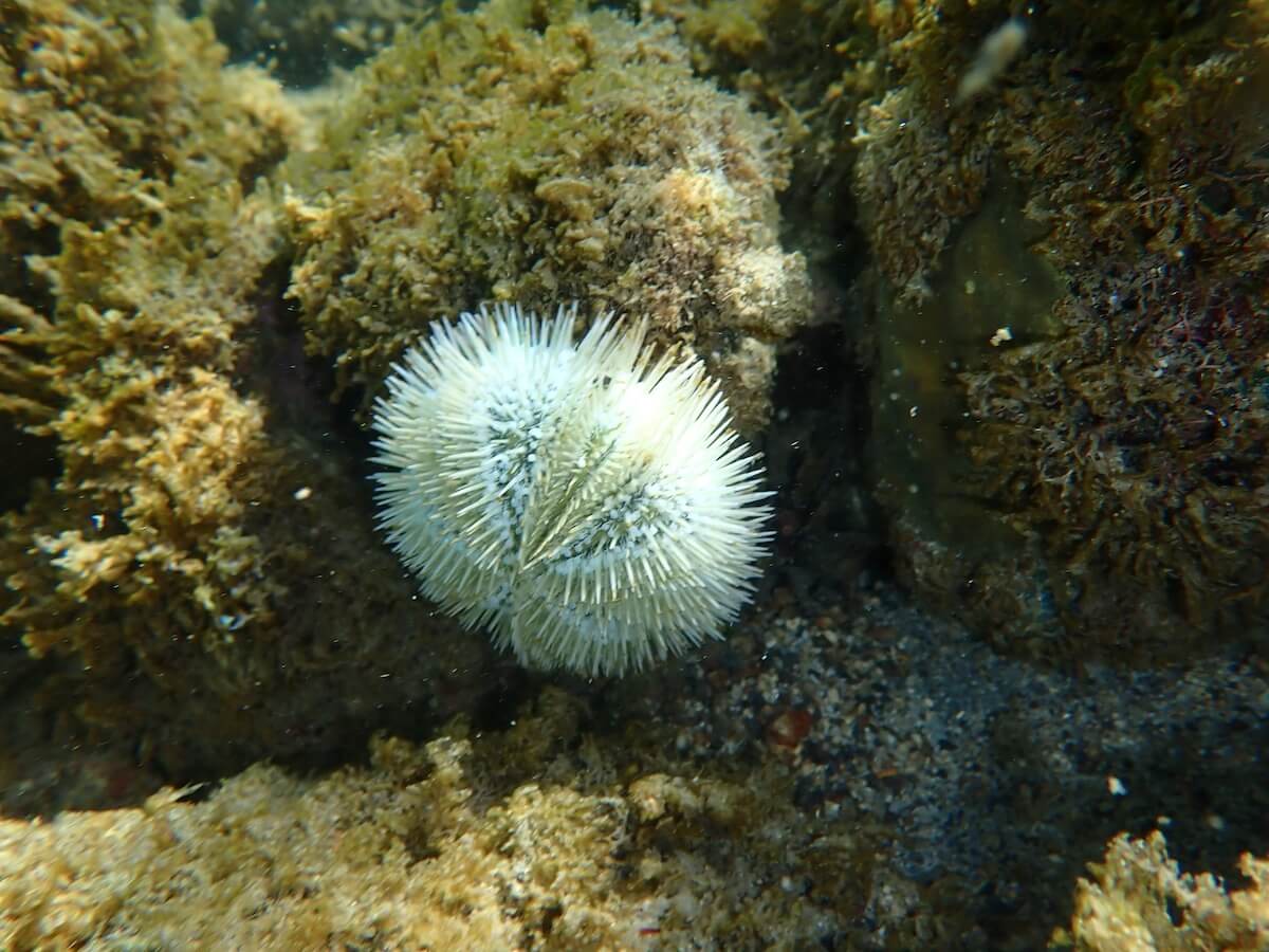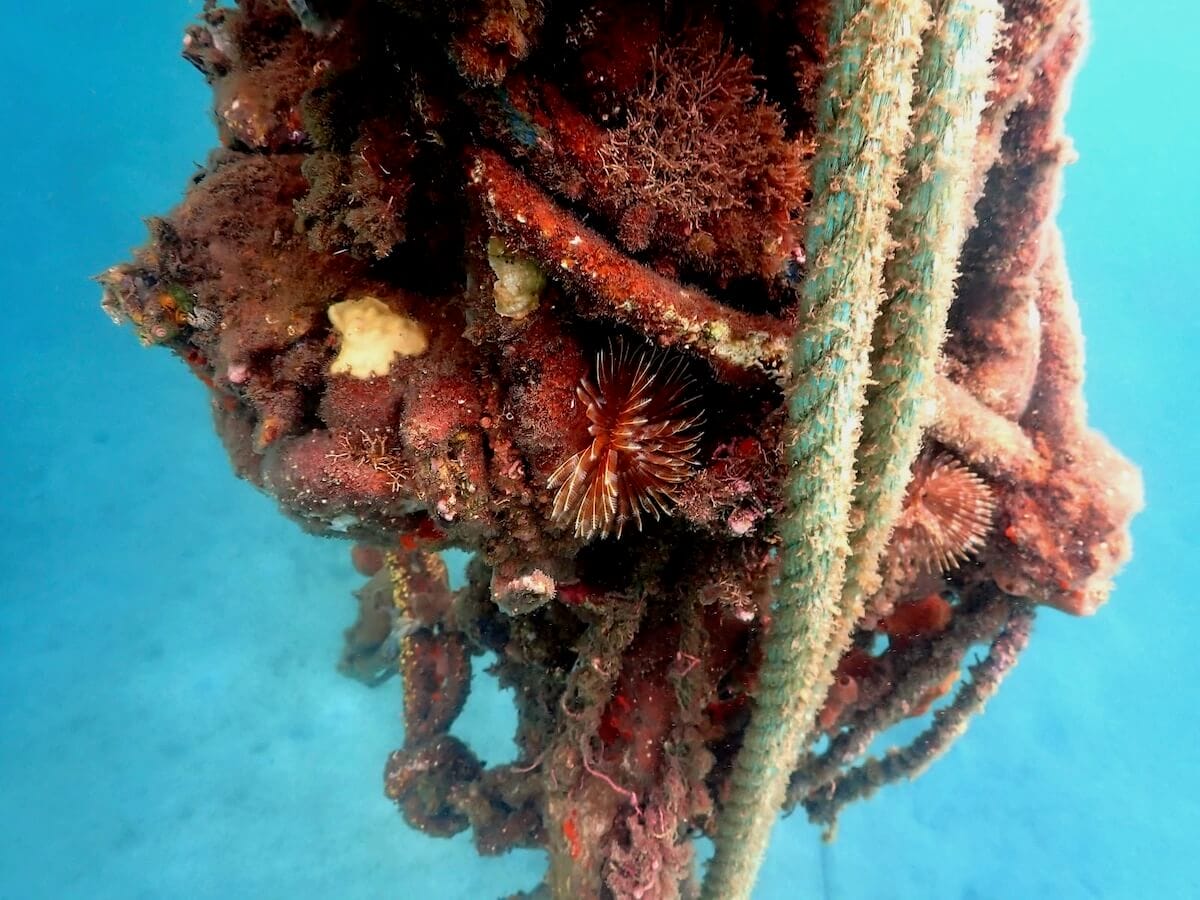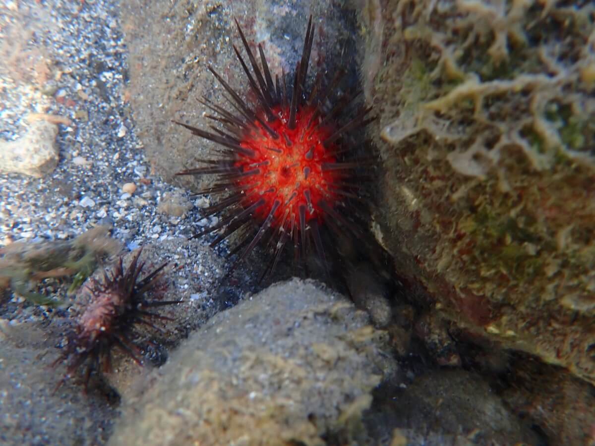 Different species of sea urchins, such as the slate pencil urchin, the variegated urchin and the rock boring urchin, live on the rocks. This environment, which offers many hiding places, is called home by pufferfish, porcupinefish and boxfish. Dozens of other species are common on this spot, including the French angelfish, one of the most beautiful fish in the Caribbean.