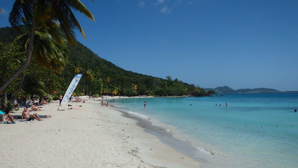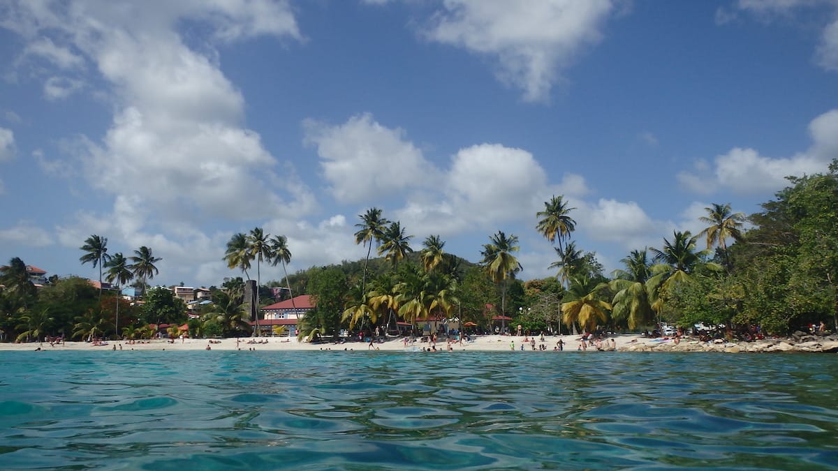 With its crystal clear waters bordered by palm trees and seagrapes, Anse Figuier is one of the busiest beaches in Martinique. Well-appointed (gardens, picnic tables, snacks, and restaurants), it is an ideal spot for a beach & snorkeling day in the south of the island. Underwater, although the seabed is not very spectacular, you can see many colorful fish and big sea stars.