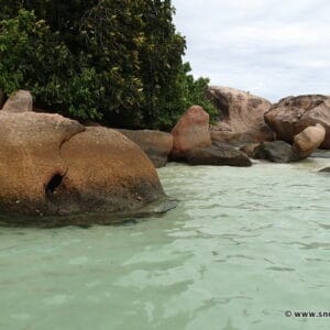 If you visit Praslin Island, it is quite likely that Cote d’Or, in Anse Volbert, will be the place you stay during your trip. This large bay features extensive seagrass beds, which are not the most spectacular marine environment. However, you may come across a diversity of reef fish, colorful starfish, and even immature sea turtles in the shallows.