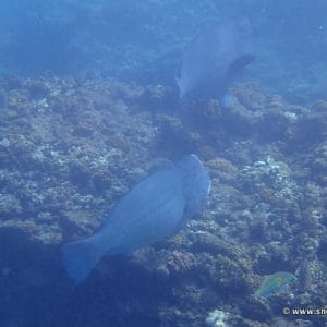 At the reef drop-off, you may get the chance to see a shoal of green humphead parrotfish. They can grow up to 3ft/1.30 meters long, and as they are particularly impressive, as they devour food along the sea bed with their strong jaws.