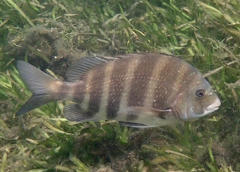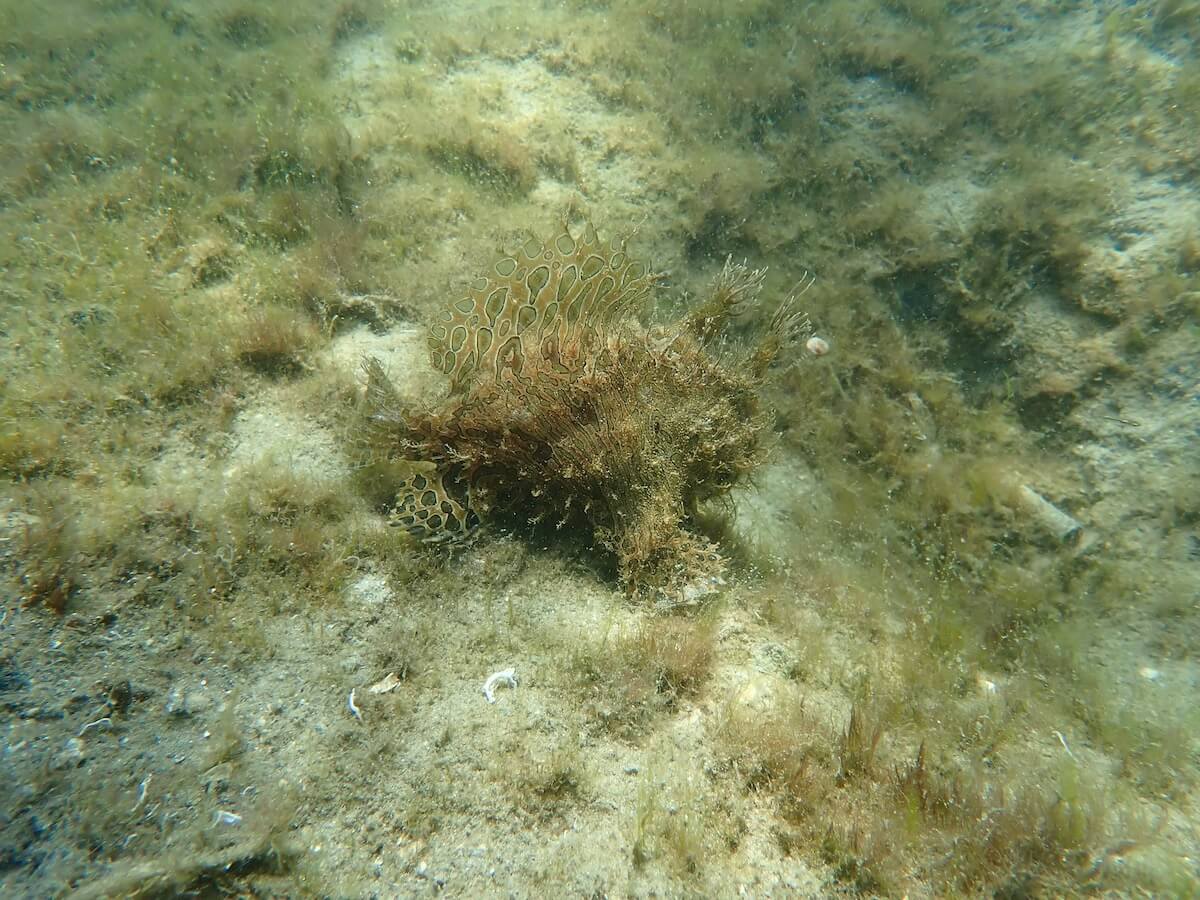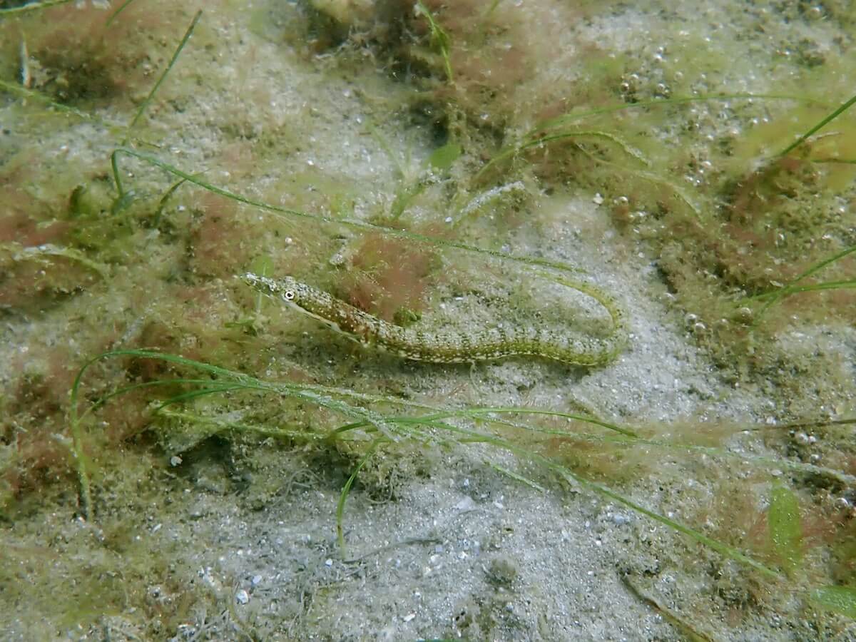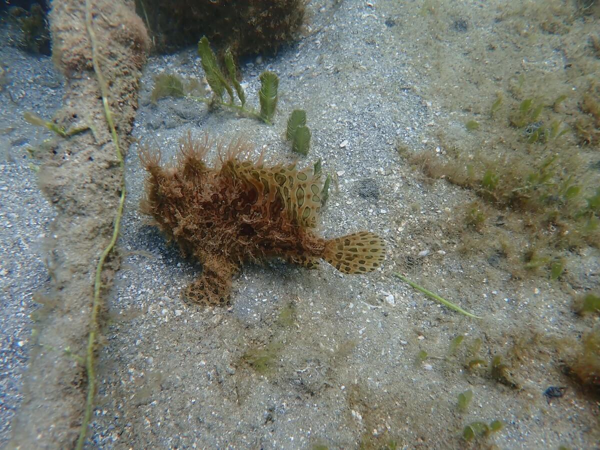 While snorkeling above the seagrass beds, you will have a good chance of encountering yellow stingrays, several species of cowfish and boxfish, spotted scorpionfish, pearly razorfish, pipefish, as well as the iconic striated frogfish, which blends perfectly with the seabed.