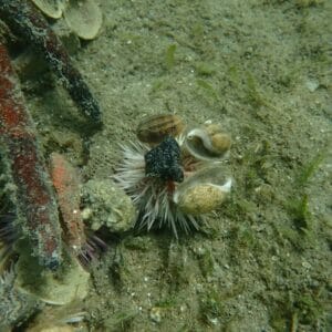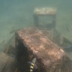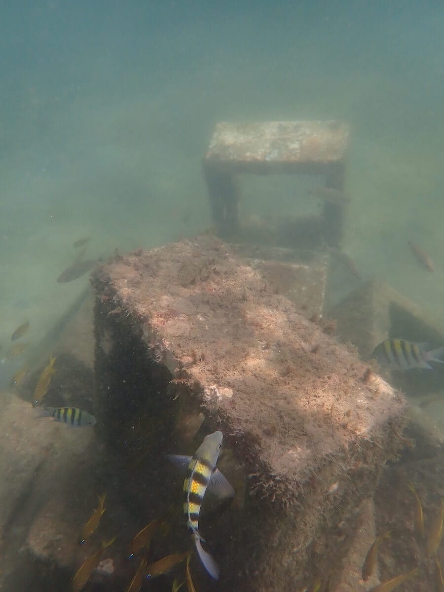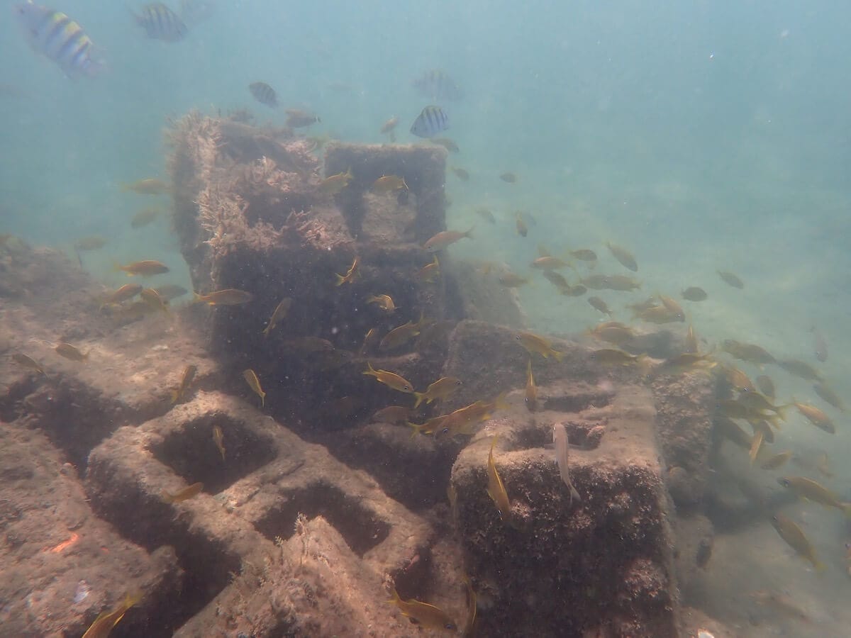 Underwater life is also abundant around the artificial reefs, among which many fish find shelter.