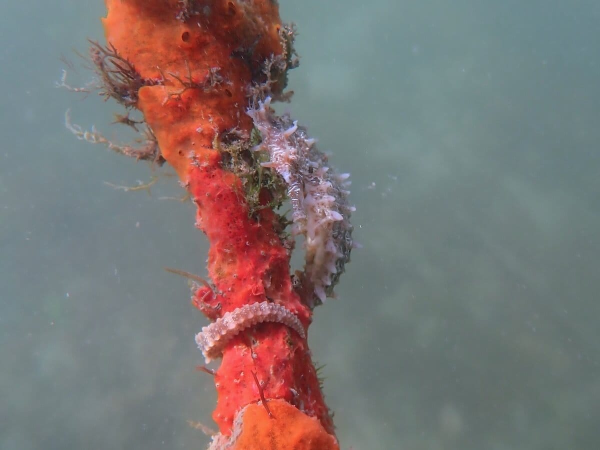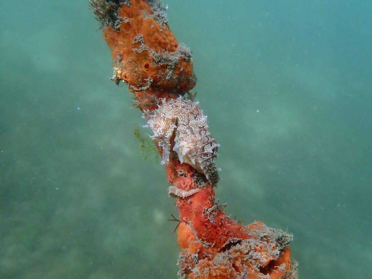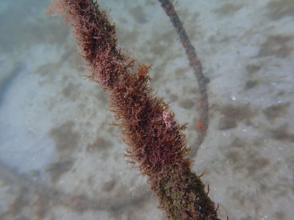Phil Foster Park is also renowned for its communities of lined seahorses, which are relatively easy to see at shallow depths. They are often found clinging to the ropes of the white buoys that delineate the swimming area, or to the sargassum that periodically floats on the surface of the water.