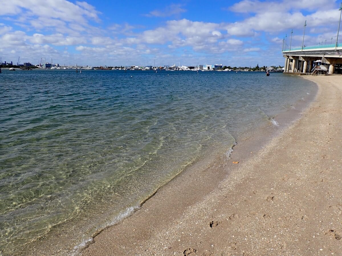 The snorkeling spot, which includes the snorkel trail, is located south of the Phil Foster Park, on the edge of the bridge. You can get in the water wherever you want from the gently-sloping sandy beach.