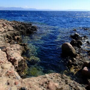 Opposite the shore, there is a shallow opening that we previously mentioned, (↕2-20ft/0.5-6m deep), known as “The Saddle”. This area opens out to the sea. It is probably the most interesting area. Here the seabed is the best preserved, with dense and multicolored corals.