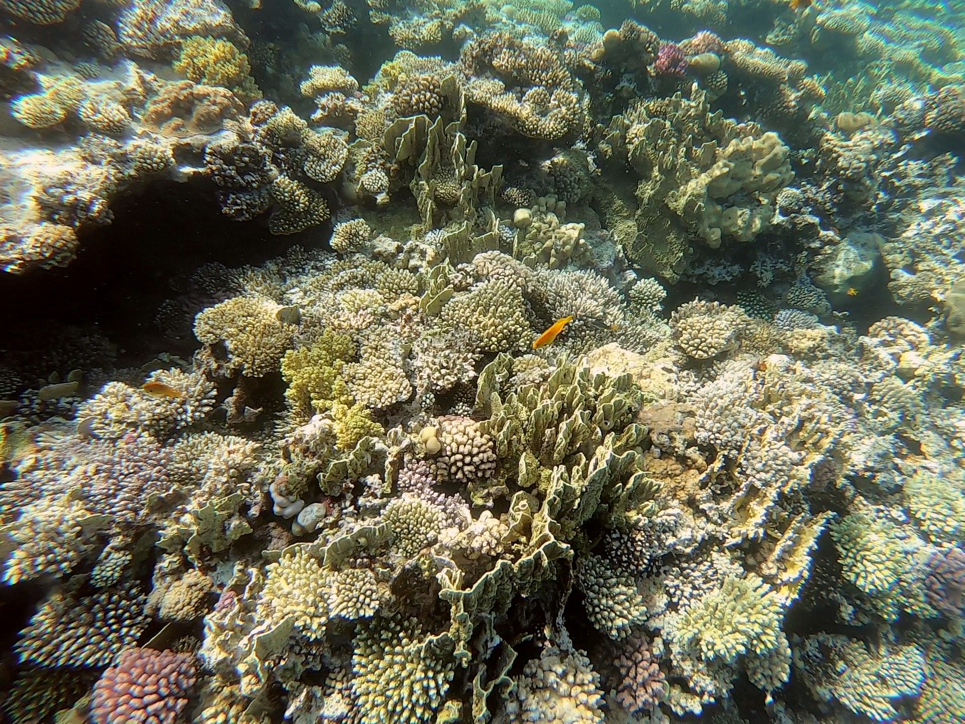 If you enter the water on the entry point n.3, you will first drift along a reef drop-off opening to the sea before entering into the Blue Hole through “The Saddle” (snorkeling itinerary 2 on the map). In this area, the seabed has more or less the same profile as inside the Blue Hole, but corals are healthier overall.