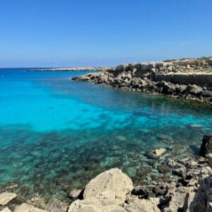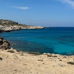 The Blue Lagoon of Cape Greco is one of the sites not to be missed when visiting Cyprus. From its cliffs, you’ll never tire of admiring the deep, crystalline blue of the lagoon, which contrasts with the surrounding arid landscape. Underwater, the spectacle is also fascinating. The exceptional underwater visibility allows you to explore rocky chaos and sandbanks where many fish live.