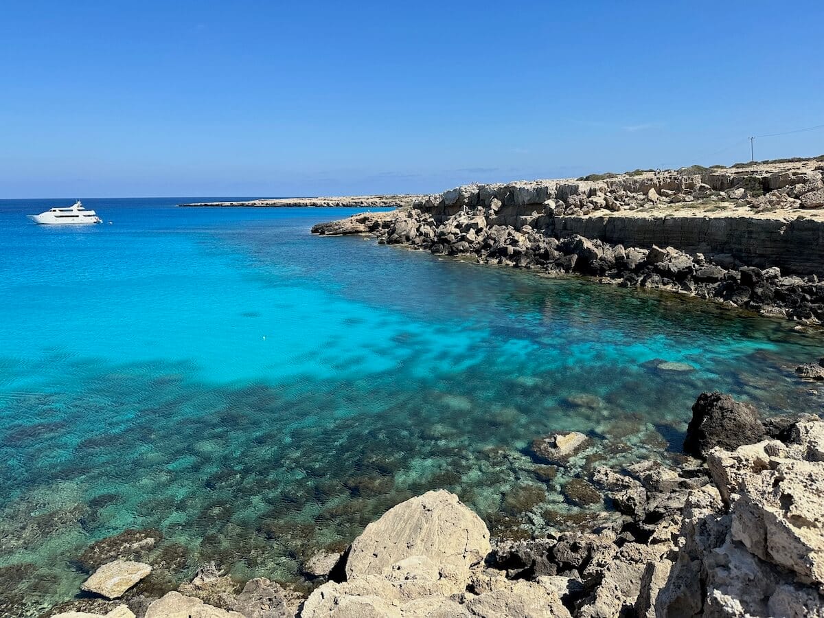 The Blue Lagoon is located on the northern shore of Cape Greco (also called Kavo Greko), a peninsula in the southeast of Cyprus. It can be accessed in two ways: